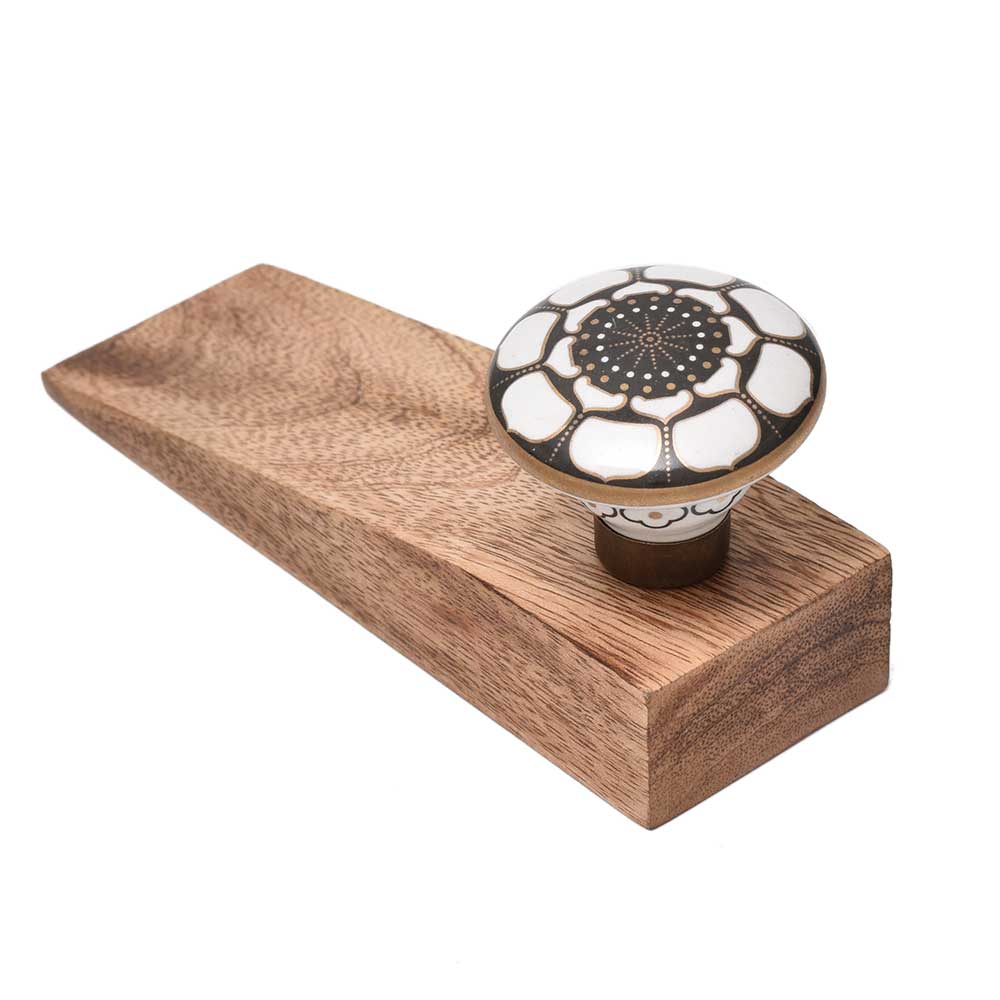 The wooden base of the door stopper provides solid and lasting support, ensuring that it stays securely in place. While the ceramic floral design adds beauty, the wooden base gives this door stopper the strength to keep your door open without slipping or damaging the floor. It’s a reliable addition to any room in need of a stylish yet functional door stopper.