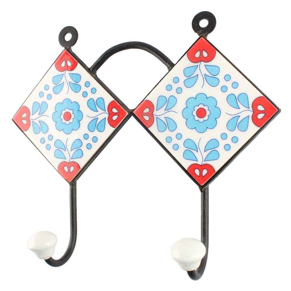 Ceramic Floral Tile Hook in Turquoise