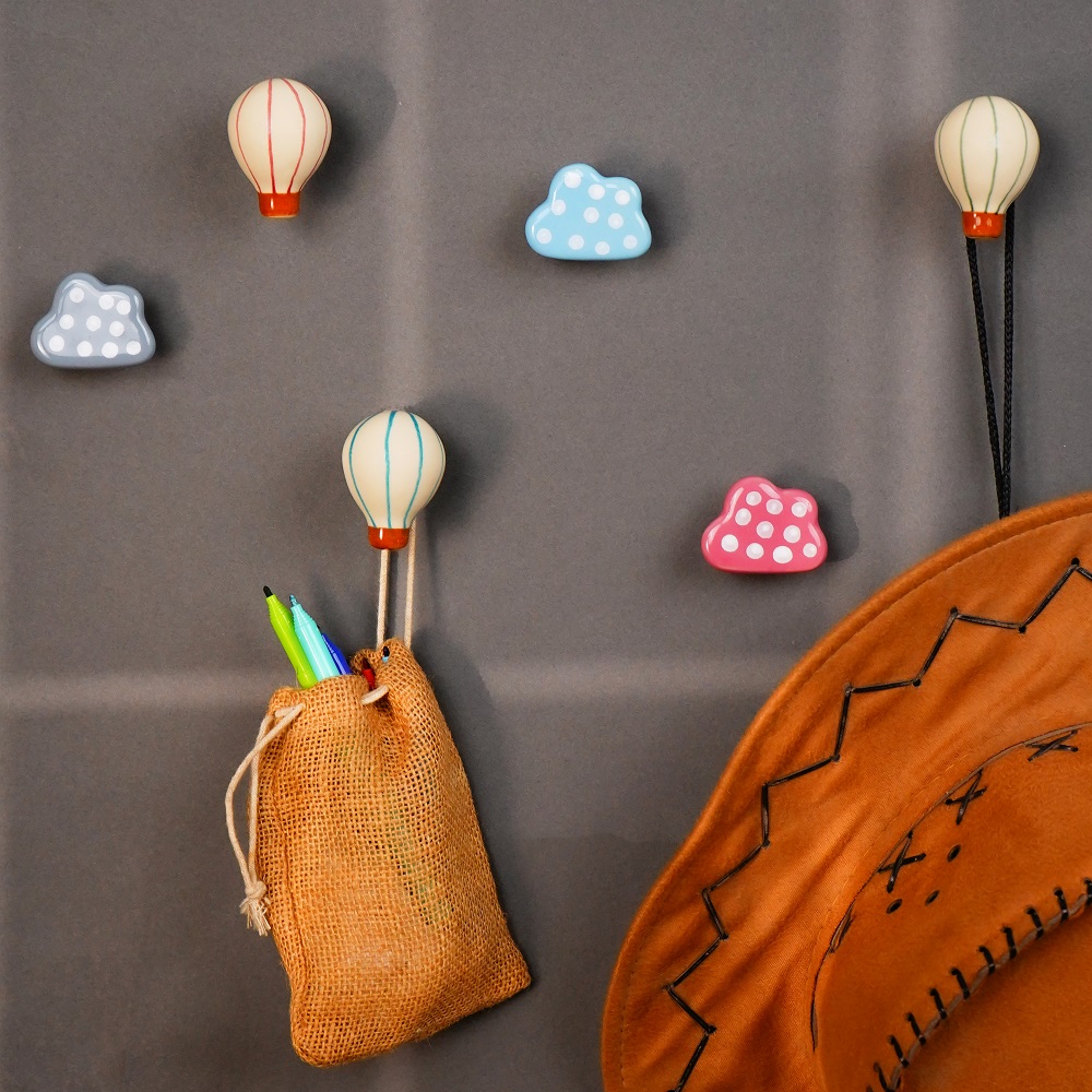 Transform your child’s room into a playful, sky-high adventure with the Ceramic Hot Air Balloon and Cloud Modern Kids Wall Hook – Set of 6. Handcrafted from durable ceramic, this delightful set features colorful hot air balloon and fluffy cloud designs that bring imagination to life while keeping everyday essentials neatly stored. Designed for both fun and function, these hooks brighten up the room and help kids develop tidy habits in a cheerful, engaging way.