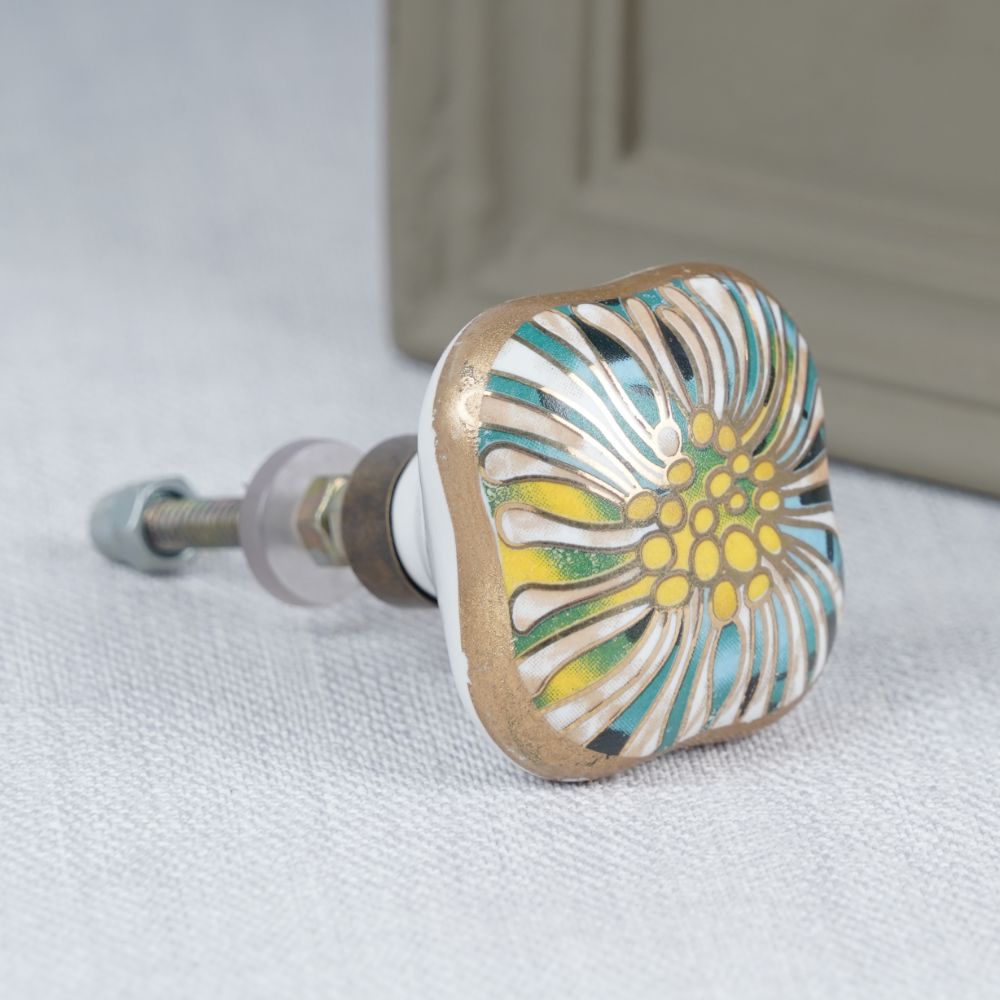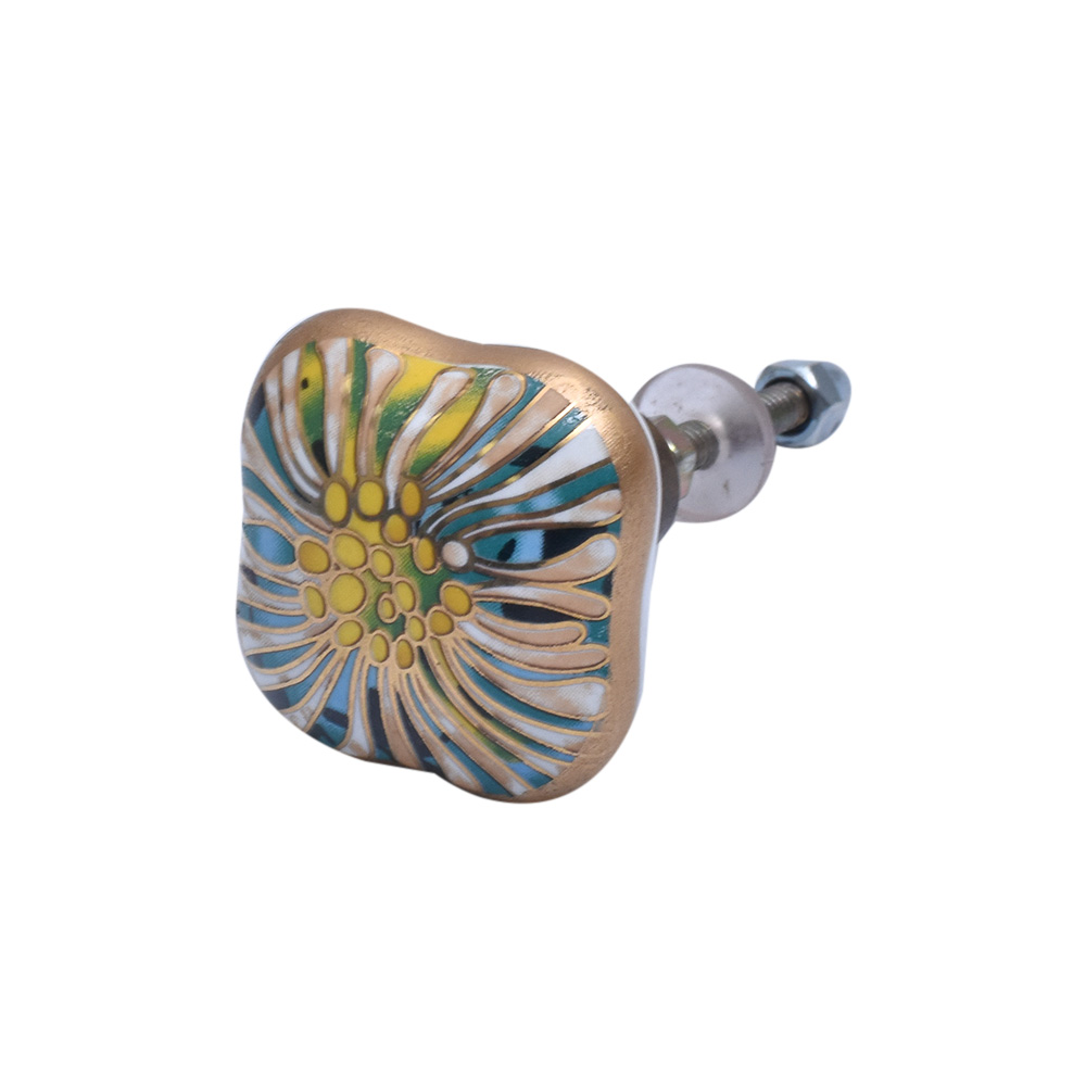 Indianshelf.com for bulk/wholesale orders.Indianshelf.us for personal purchases.Transform your furniture with the Ceramic Multicolor Abstract Square Theia Cabinet Drawer Knobs. Their vibrant multicolor design and geometric abstract style add a contemporary touch to any room. These knobs are perfect for making a bold statement on cabinets, drawers, or dressers, blending functionality with an artistic flair that is sure to draw attention.