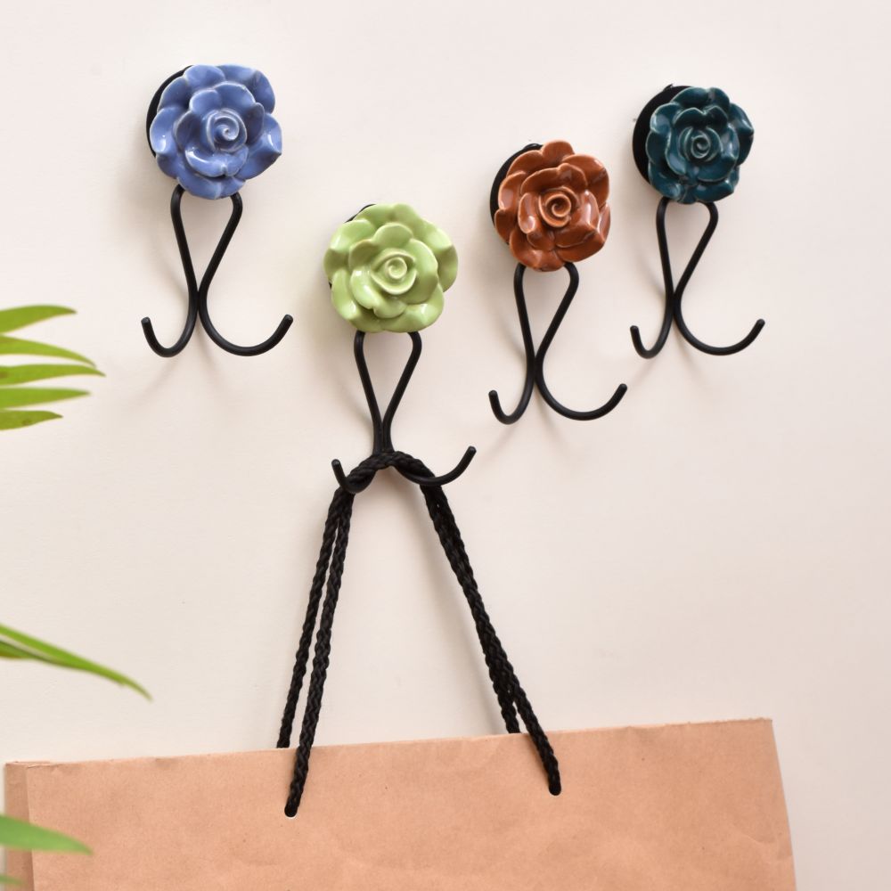 Add a pop of personality to your walls with the Ceramic Multicolor Flower Wall Hook for Keys – Set of 4. Crafted from sturdy iron and topped with vibrant, hand-painted ceramic flower knobs, these hooks are as decorative as they are functional. Each piece brings a unique flair, making it easy to organize your keys while enhancing your entryway, hallway, or kitchen. Designed for daily use, these multicolor hooks combine utility with artistic craftsmanship in a truly eye-catching way.