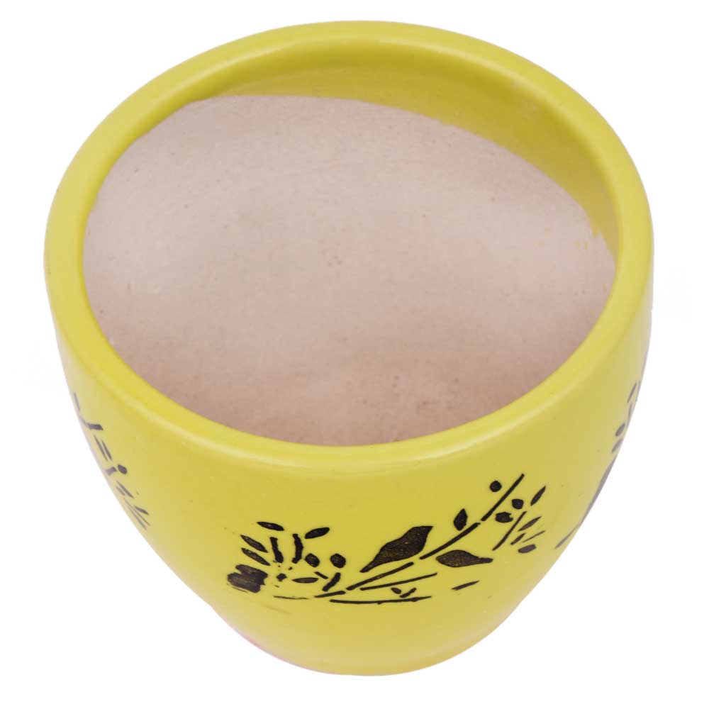 Ceramic Pot Hand painted With Yellow And Black With Small Birds On Branch to accentuate the beauty of your home, office and other commercial places, used in nursery, garden and lawn decoration, lace your herb and apices and an excellent wedding and Diwali gift for your near and dear ones.