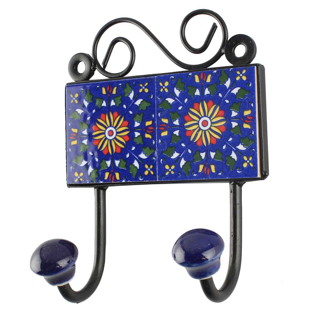 Ceramic Tile Hook in Navy Blue. When Put on Wall or Cabinet It is An Art in Itself. The Metal Part of this Hook is Black Powder Coated.