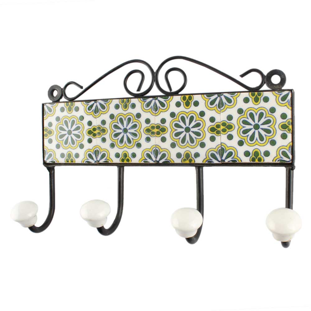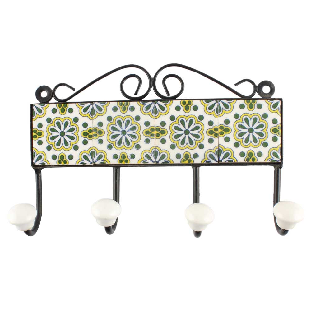 Ceramic Wheel Flower Tile Hook in Forest Green