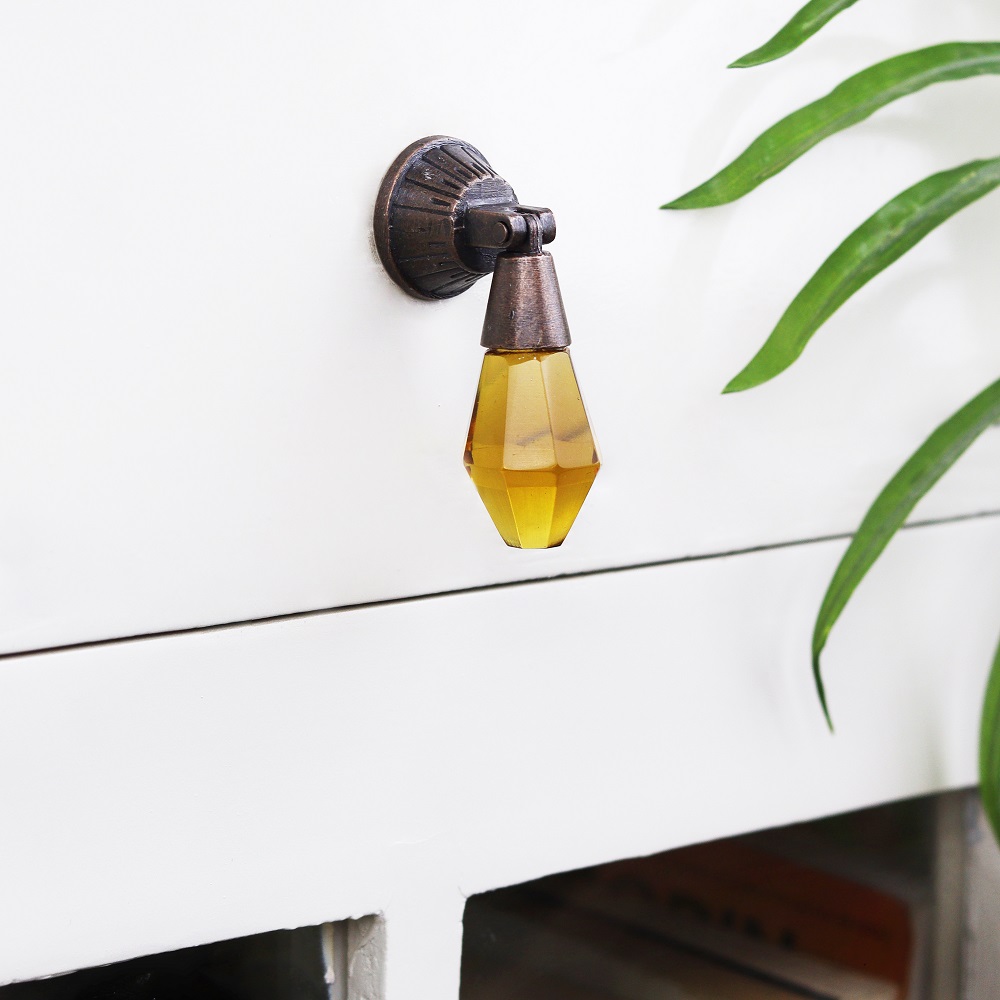 With its champagne hue, the Champagne Glass Pull Teardrop Cabinet Knob exudes class and elegance. This knob is perfect for homeowners looking to add a little extra glamour to their furniture. It works wonderfully in the kitchen, bedroom, bathroom, or living room, making it a versatile choice for various spaces. The subtle shimmer of the champagne-colored glass adds a sophisticated accent to any cabinet, drawer, or wardrobe.