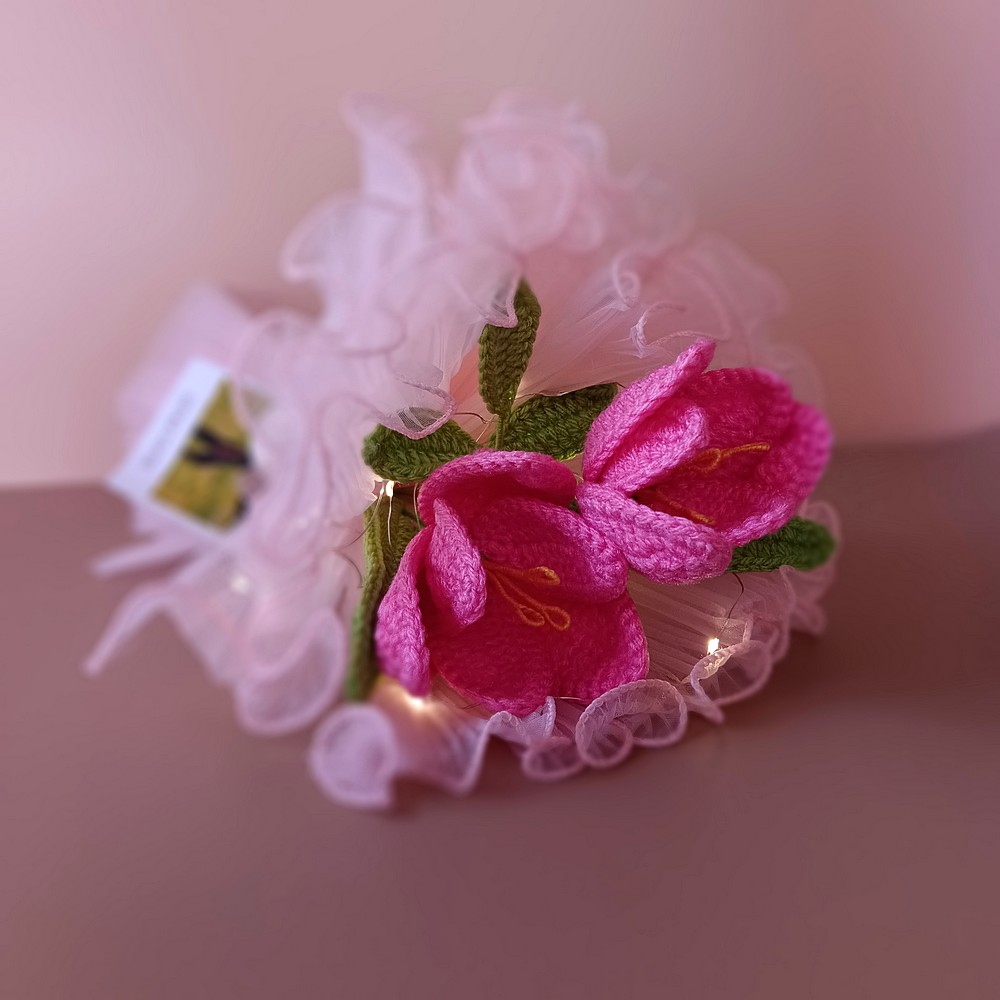 Keep your rose crochet piece away from moisture and direct sun to prevent dust and fading. Dust gently with a soft brush or a hairdryer on cool, and reshape stems carefully if needed.