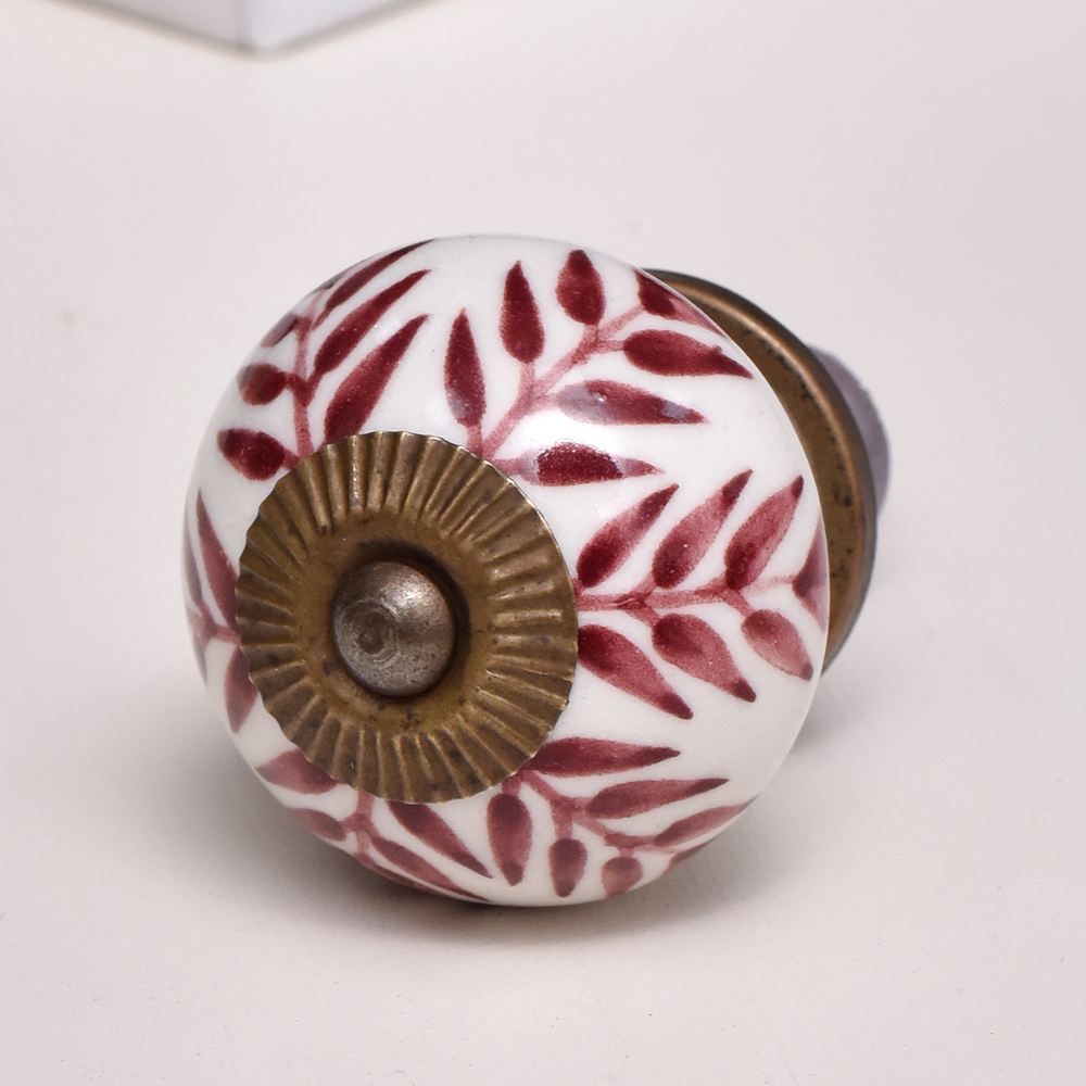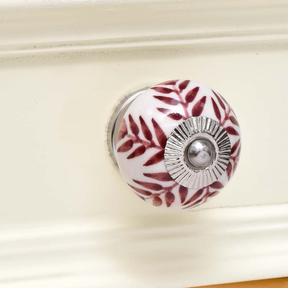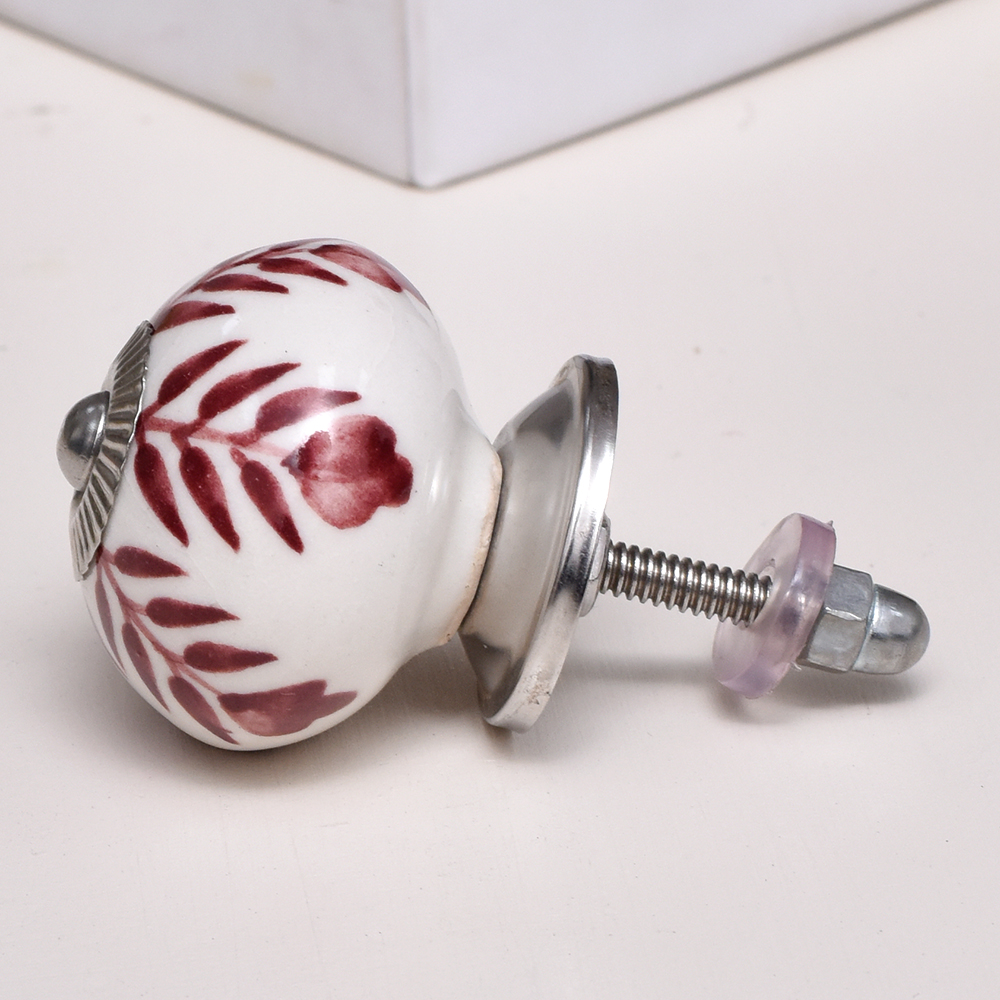 Each Cherry Floral Ceramic Knob is meticulously hand-painted, ensuring that no two pieces are exactly the same. The bright cherry red background creates a striking contrast against the floral motif, adding a timeless, artistic touch to any furniture piece.