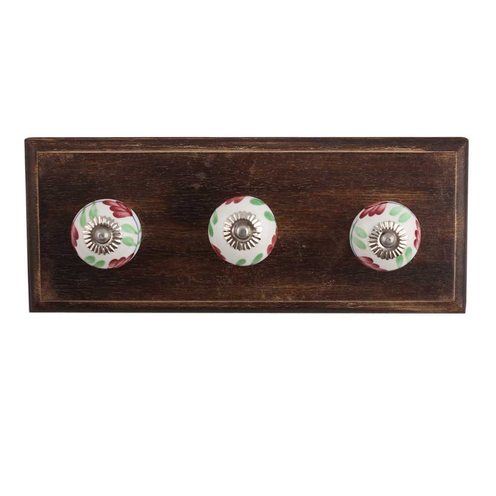 Cherry Lily Ceramic Wooden Hook. A Perfect Complement to the Soft Tone of the Wood are these White Traditional Hat & Coat Hook Made of Genuine Porcelain and Brass. It can be use to Hang Jewellery, Leashes, Towels, Scarves, Light Weight Sweaters, Caps Etc.