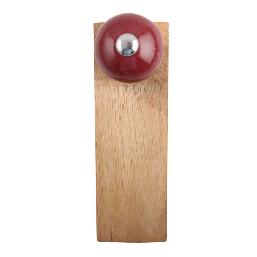 Indianshelf.com for bulk/wholesale orders.Indianshelf.us for personal purchases.The Cherry Round Ceramic Wooden Door Stopper is a stylish and functional addition to your home décor. With its rich cherry-colored ceramic surface and sturdy wooden base, this door stopper offers both elegance and practicality. Its simple yet beautiful design makes it a perfect accent piece for any room, while also protecting your walls and doors from damage.
