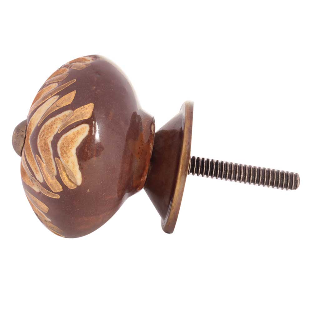 The ceramic construction ensures these knobs are not only visually appealing but also durable and long-lasting. The smooth, polished finish offers a comfortable grip, while the etched wave pattern adds a unique, artistic element. These knobs are ideal for homeowners seeking a refined look that doesn't compromise on durability.