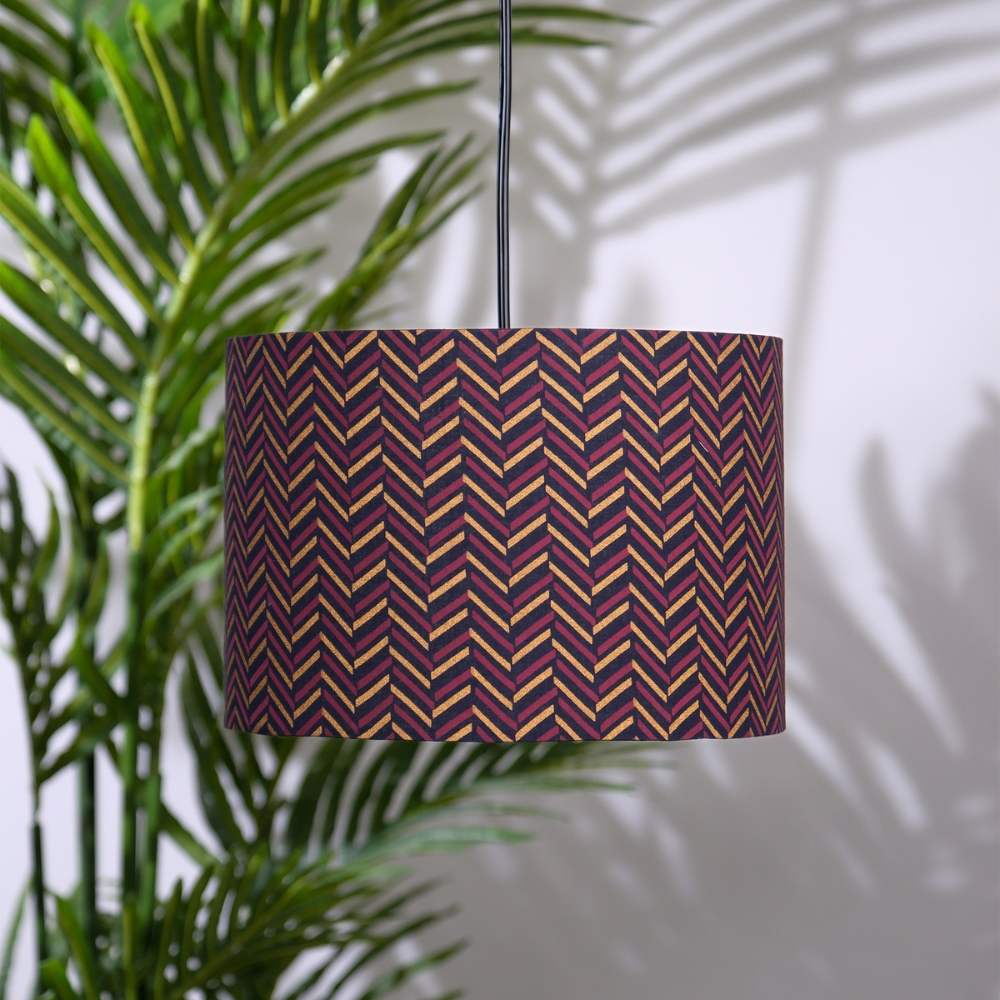 Chevron Block Print Drum Lampshade is a classic black colour lampshade with a hint of gold will give dreamy look to your space.