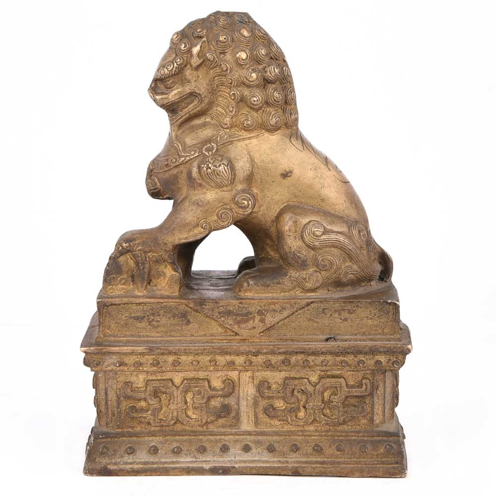 China Chinese Brass Folk Fengshui Foo Fu Dog Guardion Door Lion Statue.