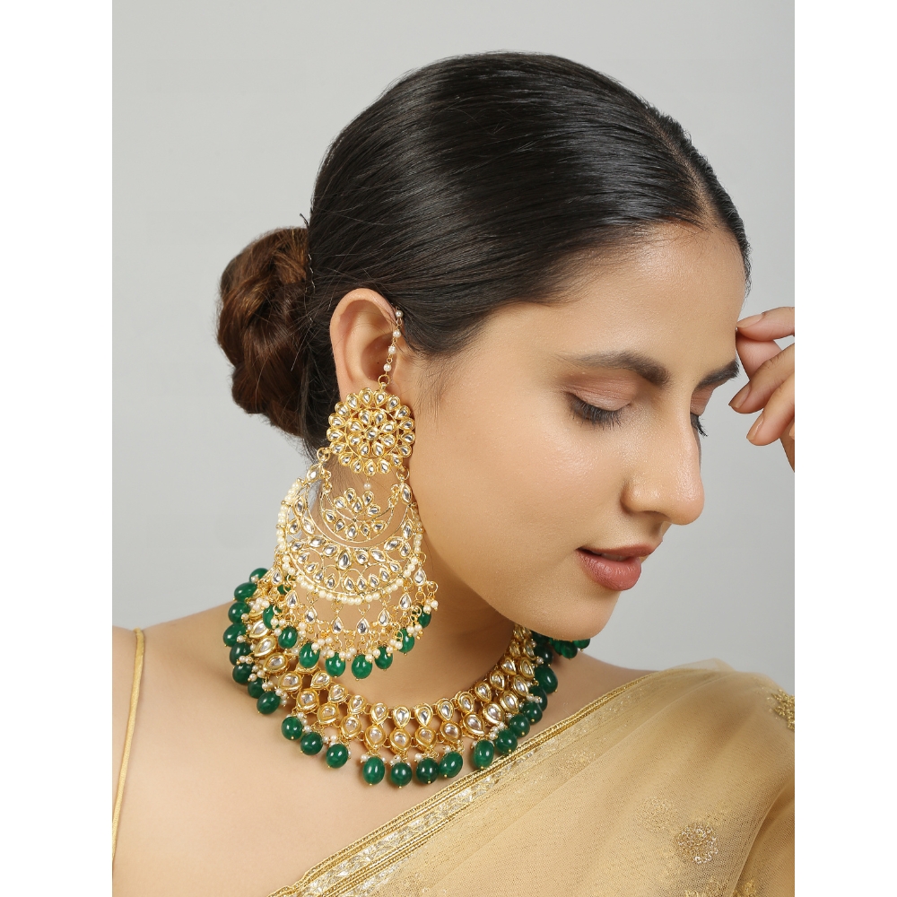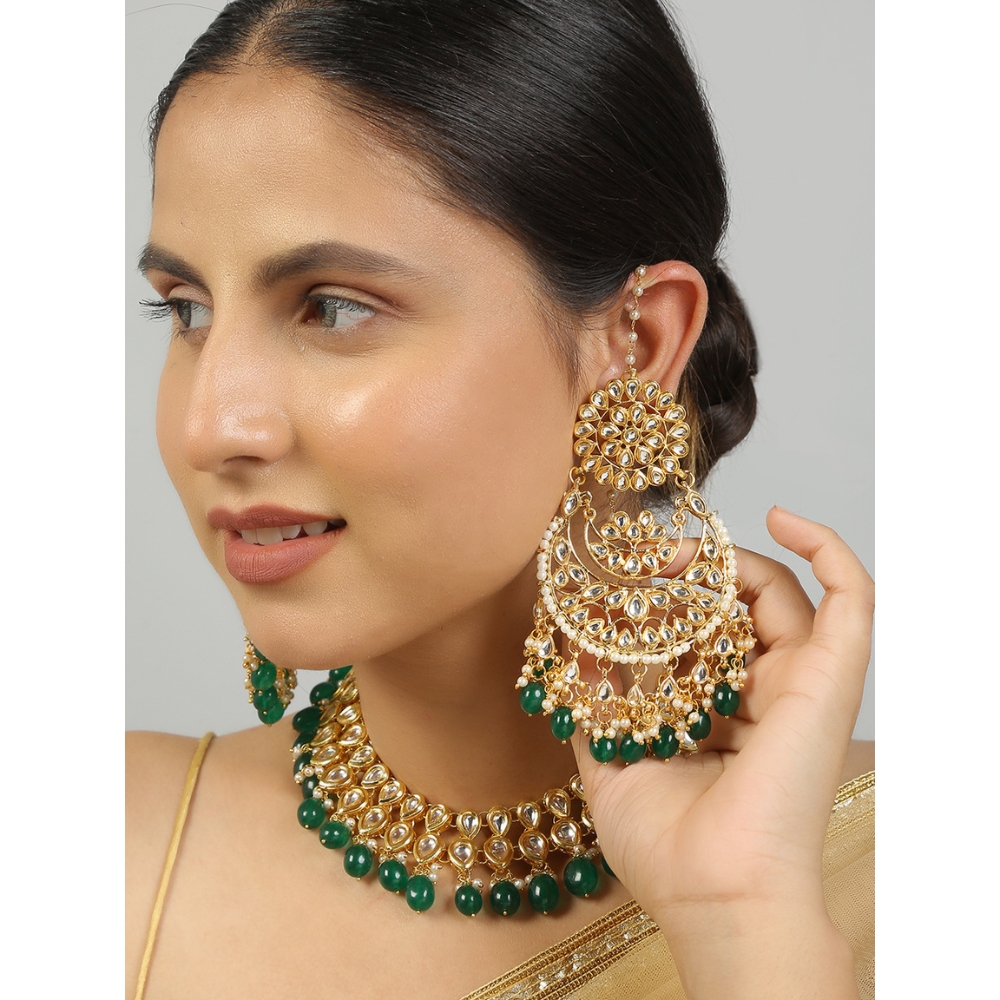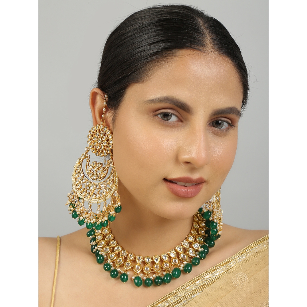 - Material: Gold-tone metal with kundan stones and bead detailing