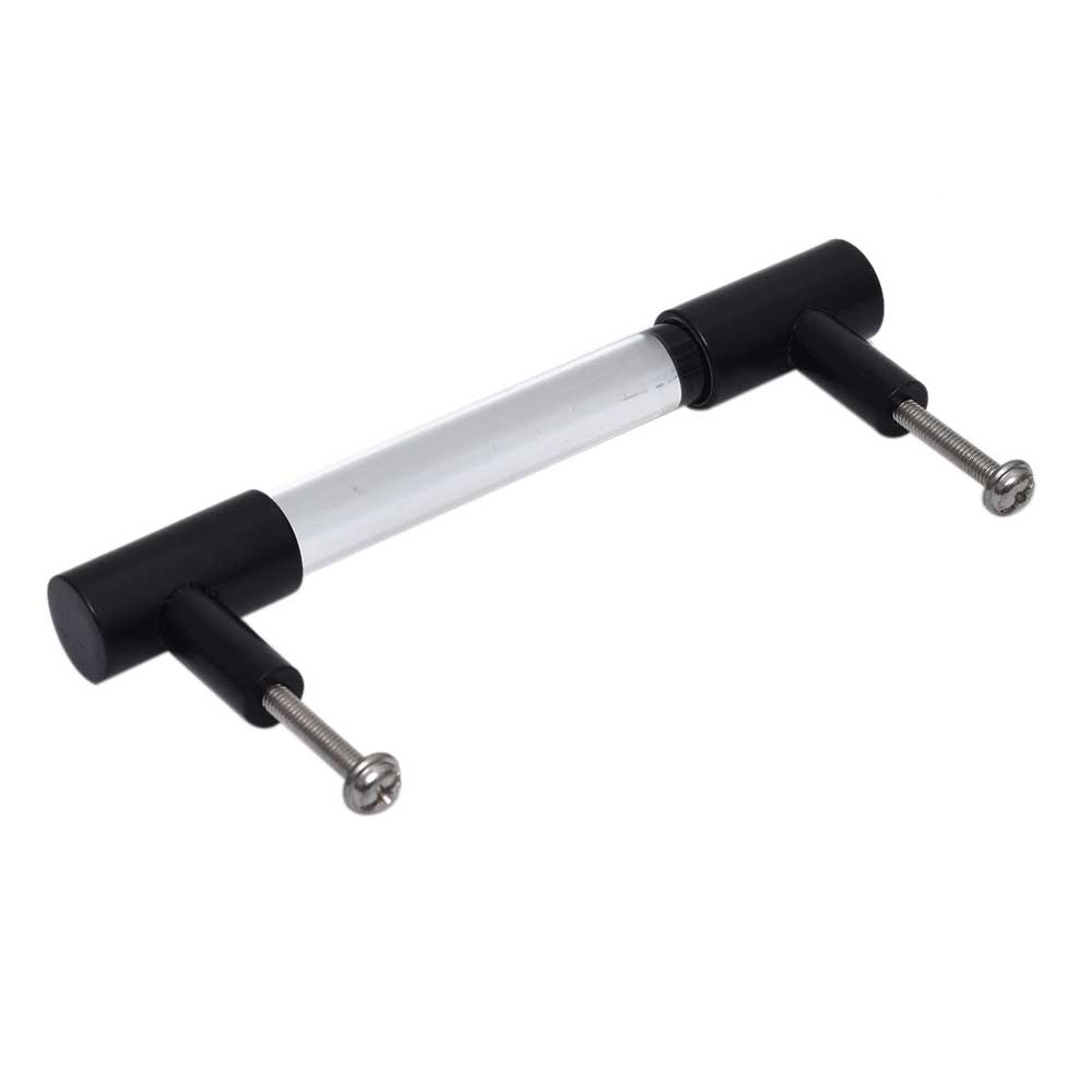 Enhance your furniture with these exquisitely crafted clear black small cylinder glass door handles, designed to add a touch of sophistication and modern elegance to any space.