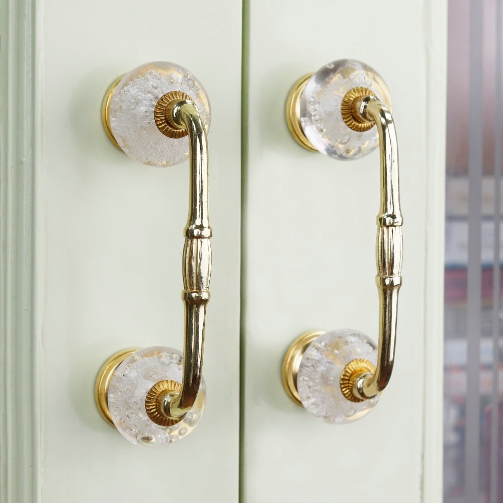Featuring unique bubble glass detailing, the Clear Bubble Glass Bridge Handle transcends mere hardware to become a piece of art. The glass's transparency, paired with its bubble-like texture, creates a playful yet refined appearance. This handle is versatile enough to enhance a variety of interior styles, from contemporary and minimalist to classic or eclectic.