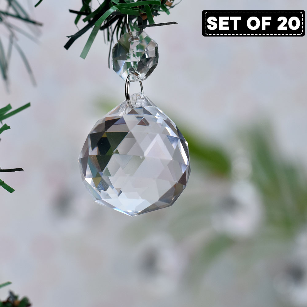 Indianshelf.com for bulk/wholesale orders.Indianshelf.us for personal purchases.The Clear Crystal Glass Octagonal Christmas Ornaments - Chandelier Drop - Set of 20 are the perfect addition to your holiday decorations, bringing an air of elegance, sophistication, and a brilliant touch of sparkle. These beautifully crafted ornaments are designed to catch the light from every angle, creating a stunning chandelier effect that will enhance any space, whether it's hanging from a Christmas tree, adorning windows, or used as part of a centerpiece.
