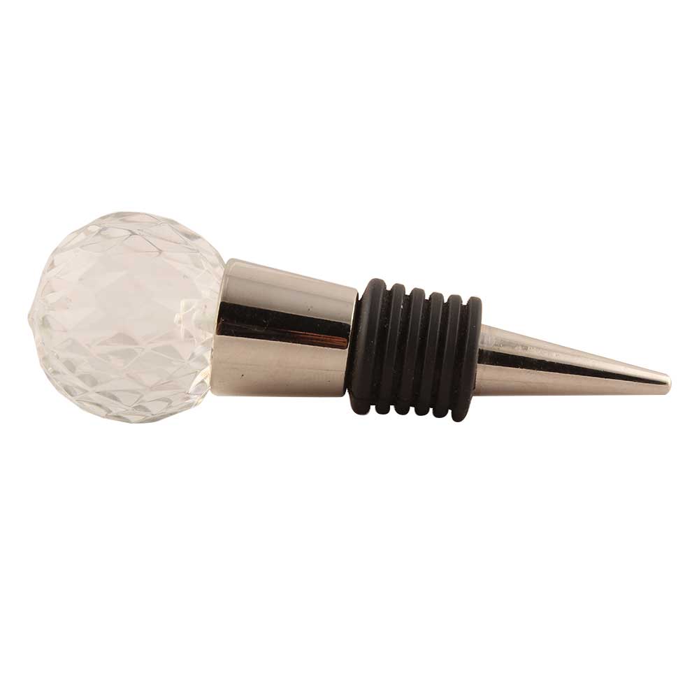 Clear Diamond Cut Glass Wine Stopper. Zinc Alloy Wine Bottle Stopper with Attractive Jute Bag Packaging.