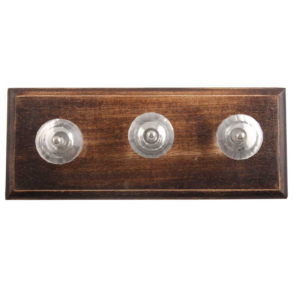 Clear Fine Cut Glass Wooden Hooks