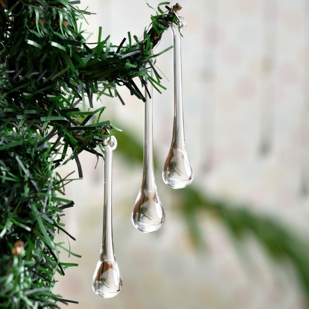 I am sharing this product with my daughter as there so many. The clear drops will enhance the sparkle and dramatic visual of my Christmas tree which has approximately 1000 clear glass icicles already! Love the way they look and feel!