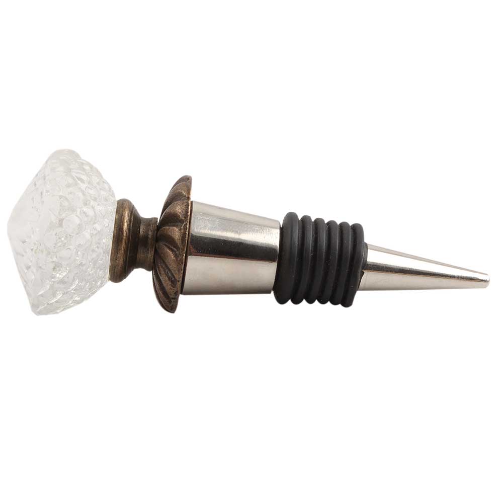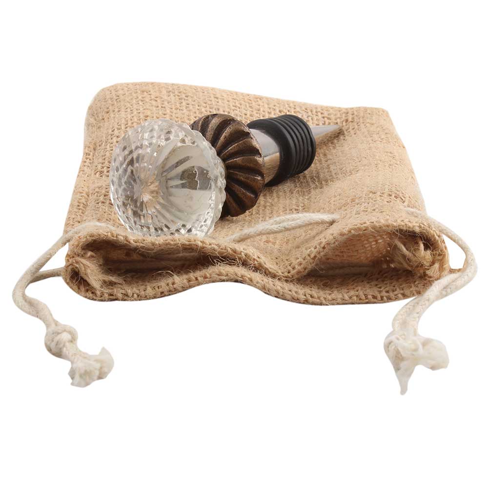 Clear Glass Wine Stopper.zinc alloy wine bottle stopper with attractive Jute Bag Packaging.