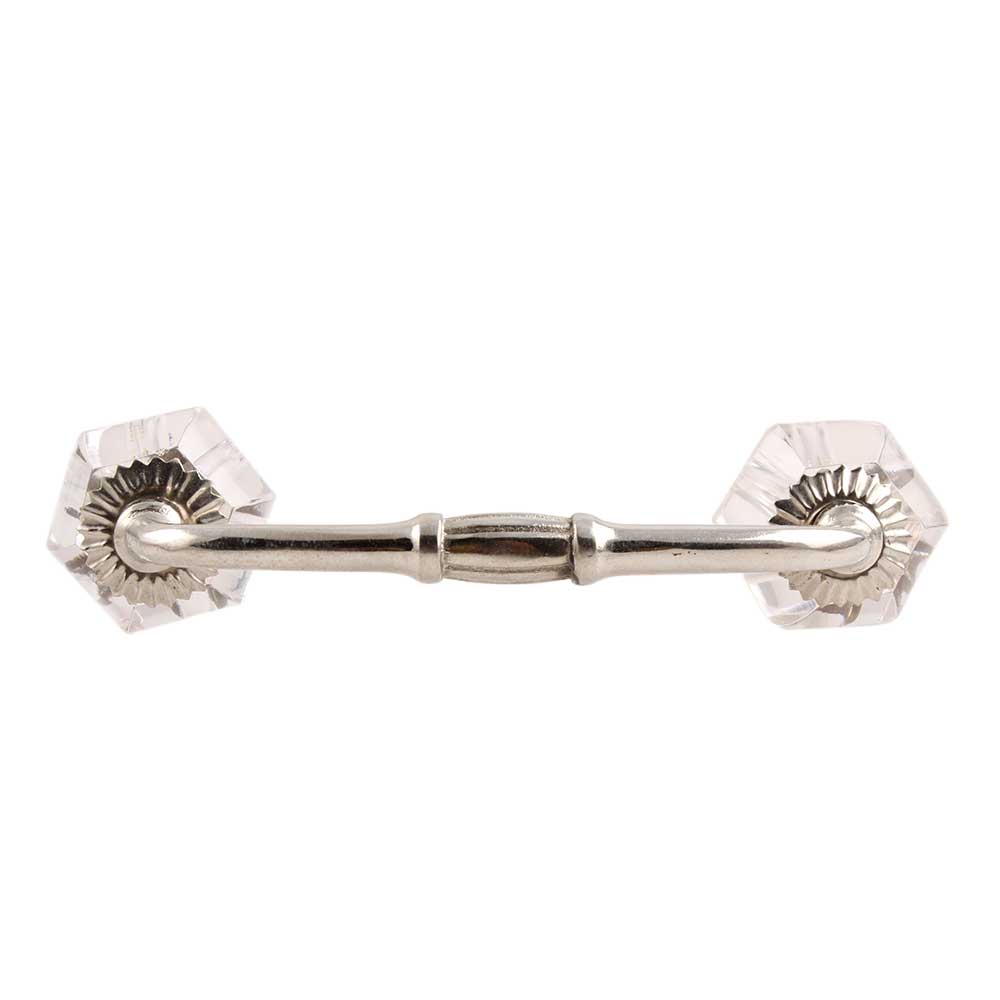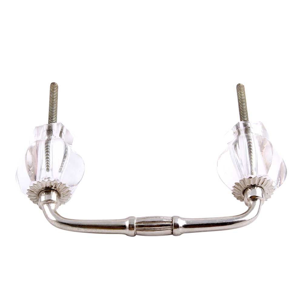Clear Hexagon Cut Glass Bridge Handle. Ideal for Drawer, Dresser, Cabinet, Wardrobe, Cupboard and Almirah etc.
