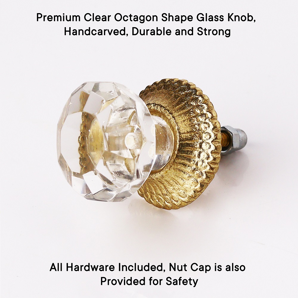 The octagonal shape of this knob provides a sleek, contemporary look, while the transparent glass material brings brightness and sophistication to any environment. Its adaptable design complements a wide range of furniture styles, from traditional to modern.