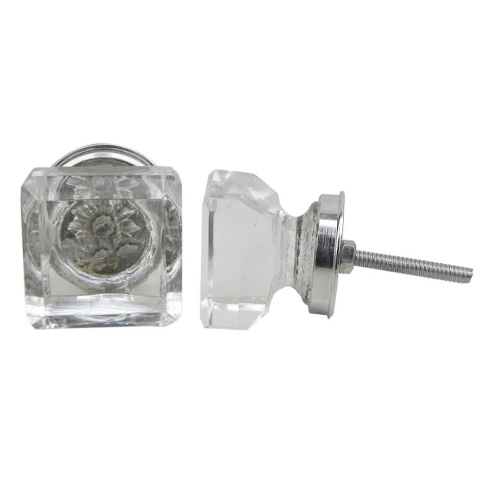 Clear Square Glass Knobs. Ideal for Drawer, Dresser, Cabinet, Wardrobe, Cupboard and almirah