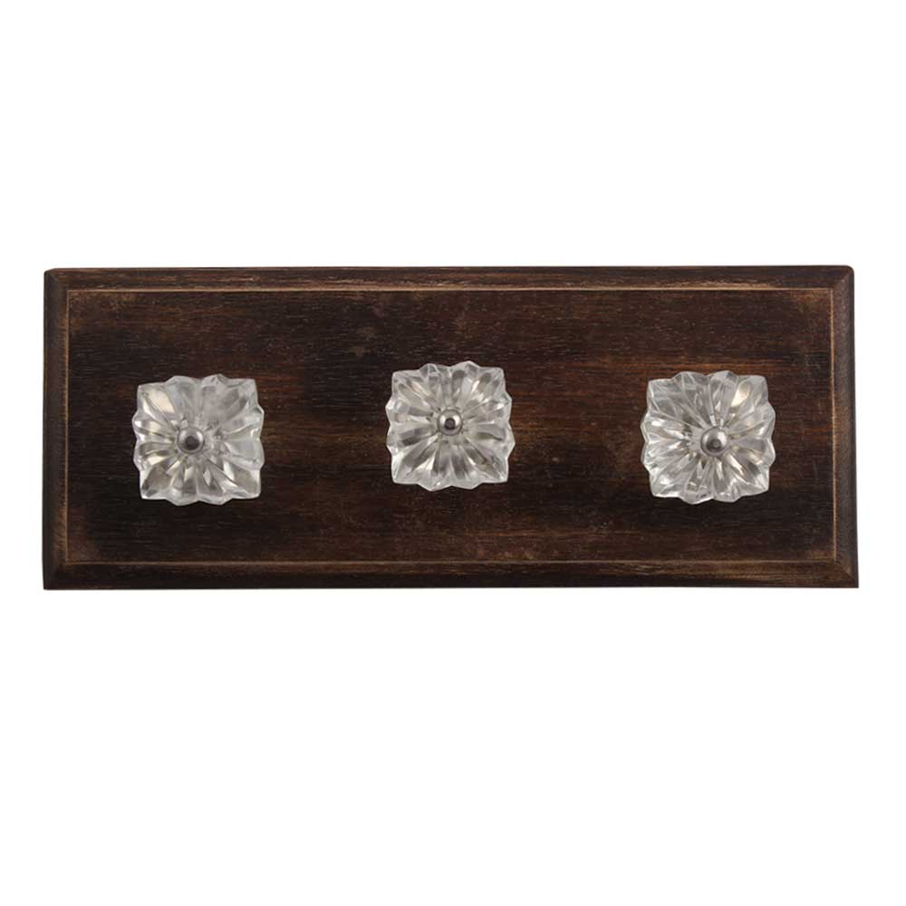 Clear Square Melon Glass Wooden Hook. A Perfect Complement to the Soft Tone of the Wood are these White Traditional Hat Coat Hook Made of Genuine Porcelain and Brass. It can be use to Hang Jewellery, Leashes, Towels, Scarves, Light Weight Sweaters, Caps Etc.