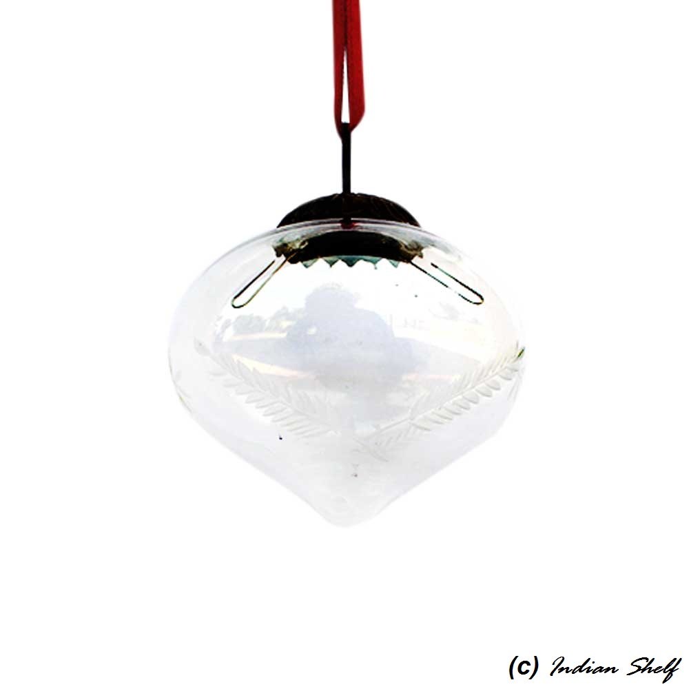 Indianshelf.com for bulk/wholesale orders.Indianshelf.us for personal purchases.The Clear Turnip Leaf Cut Glass Christmas Hanging is a unique and beautiful ornament that brings a touch of nature to your holiday celebrations. Featuring a delicate turnip leaf cut design, this ornament is both intricate and elegant. Its clear glass construction allows light to shine through, creating a shimmering, ethereal effect that adds warmth and charm to your festive decorations.