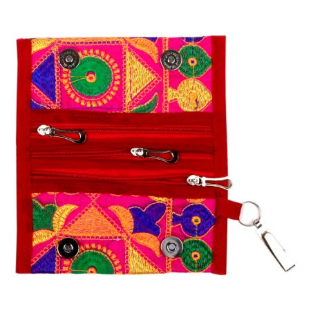 Pink Colorful Hand Embrodered Zip Top Clutch Bag With Tassle