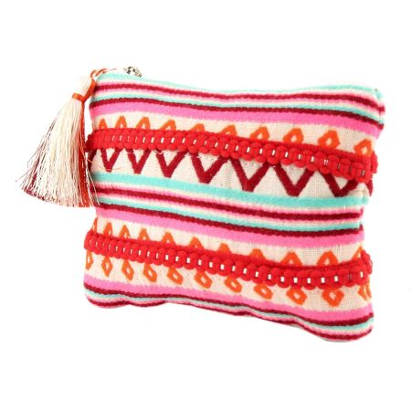 Multicolored ZipTop Jaquard Cotton Zip Top Clutch Bag With Tassle
