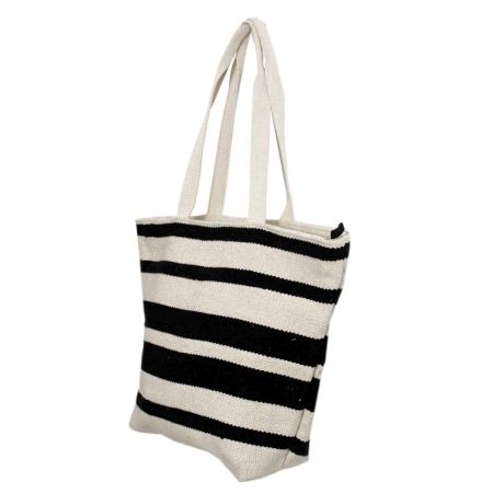 Black And White Striped Jaquard Large Cotton Tote Bag