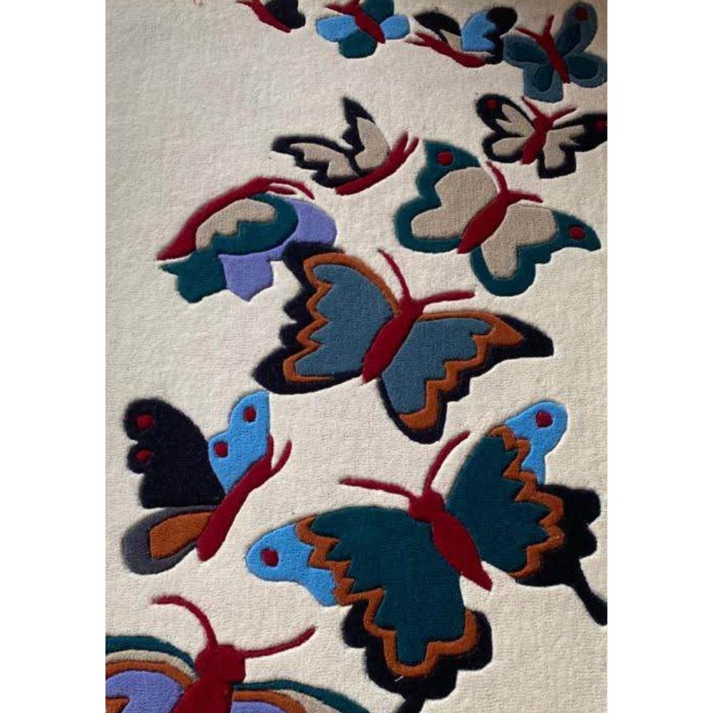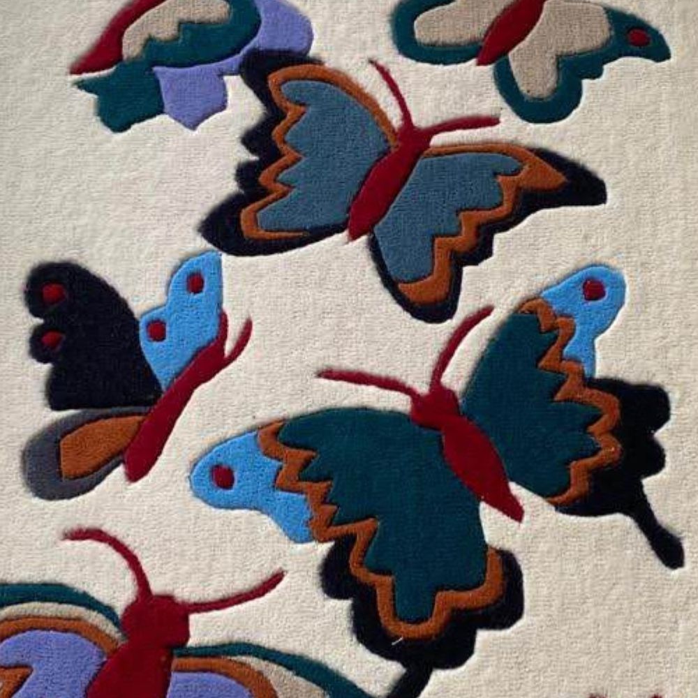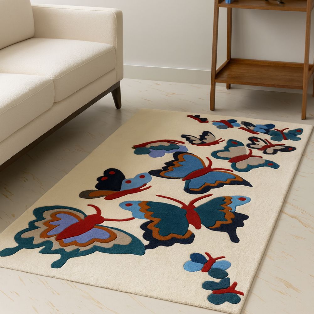 Product Overview This hand-tufted wool rug is designed to brighten your space with its playful butterfly motif and bold colors. Each butterfly is crafted with vibrant shades of teal, blue, lilac, red, and earthy browns, all set against a soft cream background. The texture is plush and inviting, making it an eye-catching statement piece for your living room, bedroom, nursery, or creative corner. Colors & Design Primary Colors: Teal, Blue, Red, Lilac, Brown Background: Neutral Cream Pattern: Multiple butterflies in different sizes, creating a lively, layered effect that feels both whimsical and artistic Each butterfly is outlined and carved to give depth and dimension, allowing the design to stand out beautifully on the wool surface. Available Sizes We offer a wide range of standard and custom sizes, including: Rectangular: 23 ft up to 1218 ft Square & Round: 55 ft up to 1515 ft Runners: 266 ft up to 315 ft Looking for a special dimension? Message us for custom orders. Customization Choose your preferred size Request color changes to match your dcor Bulk and gift orders available We take.