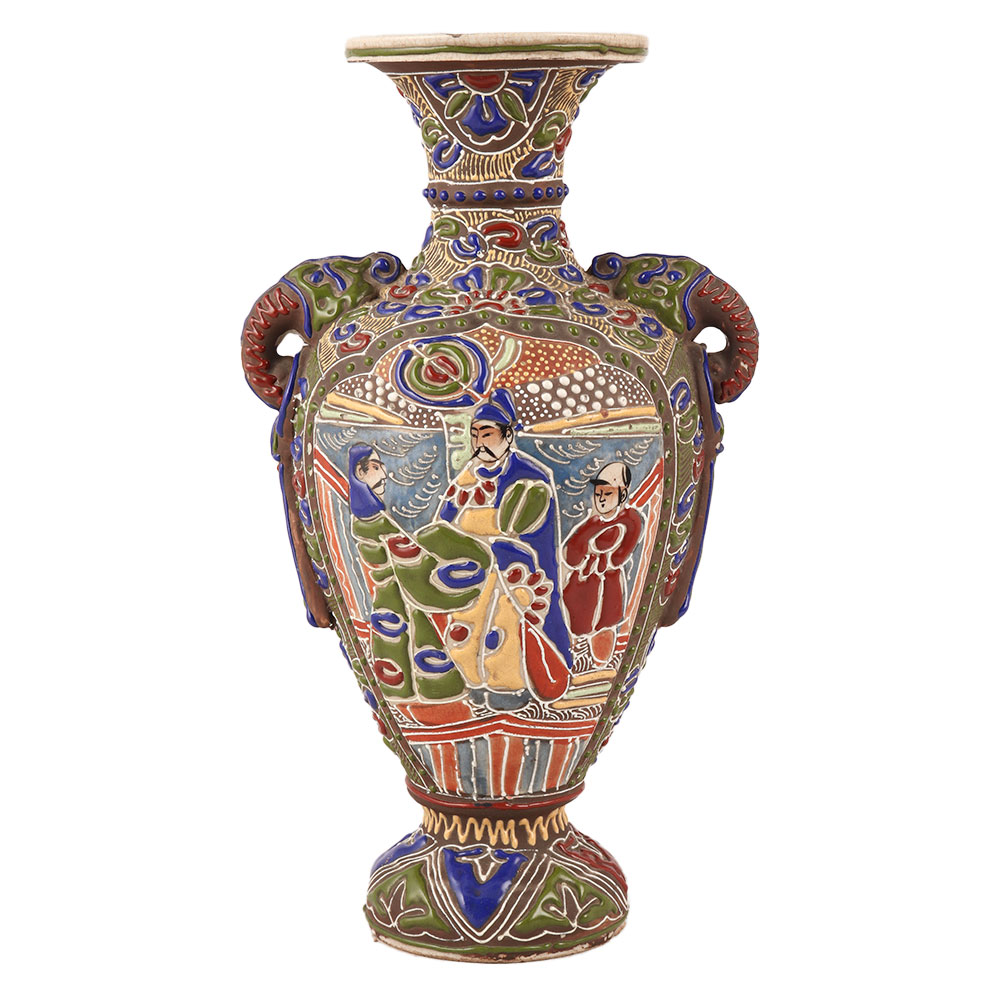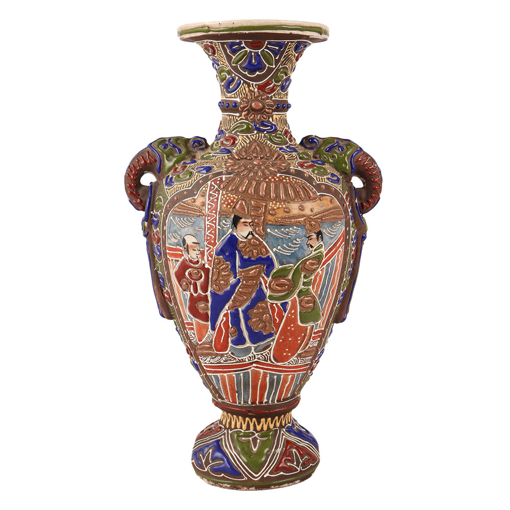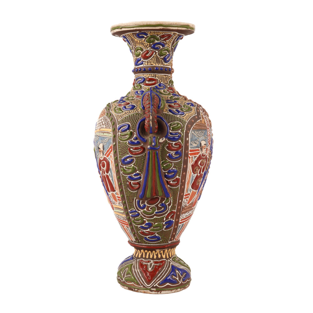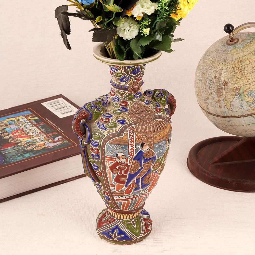 This stunning flower pot is a true masterpiece, made from high-quality porcelain and designed in the exquisite Satsuma art style. The intricate and beautiful engravings on the surface of the pot make it a unique and eye-catching piece for decoration in any space. The vibrant colors and intricate details showcase the artistic excellence and cultural richness of Satsuma art. Perfect for enhancing interior decor or as a collector's item, this flower pot adds a touch of elegance and sophistication to any setting. It can also be a cherished gift for loved ones, symbolizing beauty, grace, and auspiciousness. This Satsuma art flower pot is a treasure that combines artistry and functionality, making it a perfect addition to any home or a thoughtful gift for special occasions.