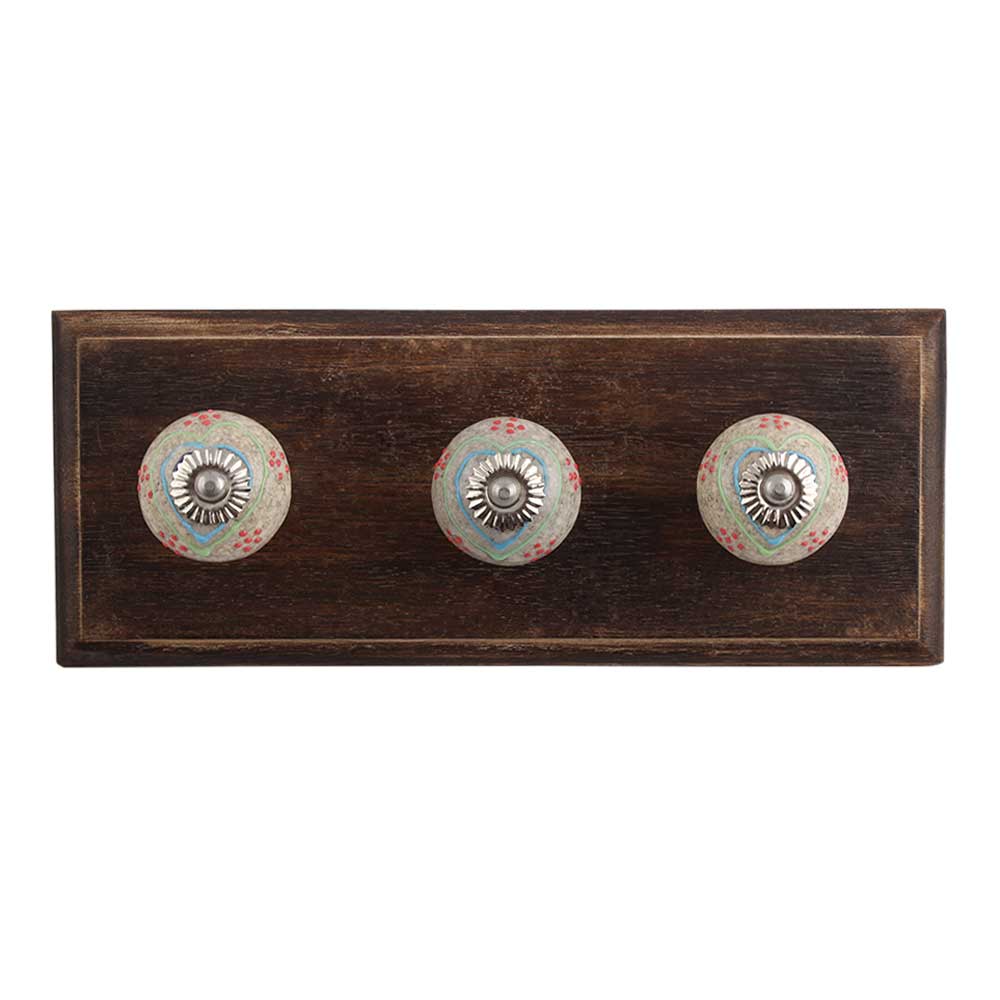 Colorful Hearts Crackle Ceramic Wooden Hook. A Perfect Complement to the Soft Tone of the Wood are these White Traditional Hat & Coat Hook Made of Genuine Porcelain and Brass. It can be use to Hang Jewellery, Leashes, Towels, Scarves, Light Weight Sweaters, Caps Etc.