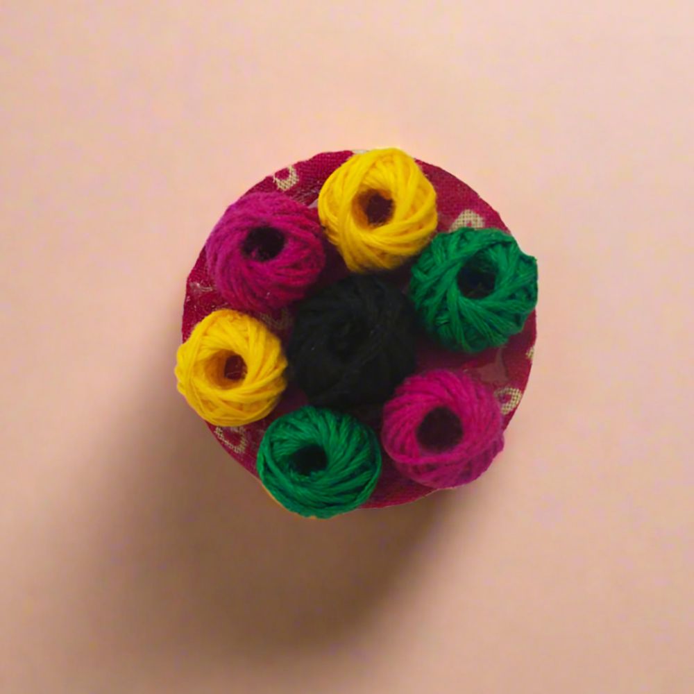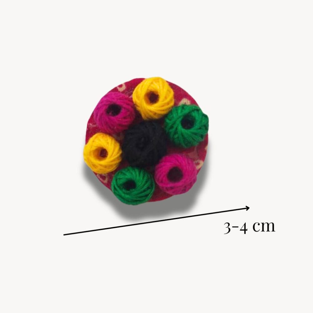 This quirky and colorful finger ring features vibrant Bandhani fabric over an MDF base. Its round, adjustable design makes it a perfect pop of personality for festive, wedding, or party attire. Ideal for those who love unique accessories that make a statement without being too loud.