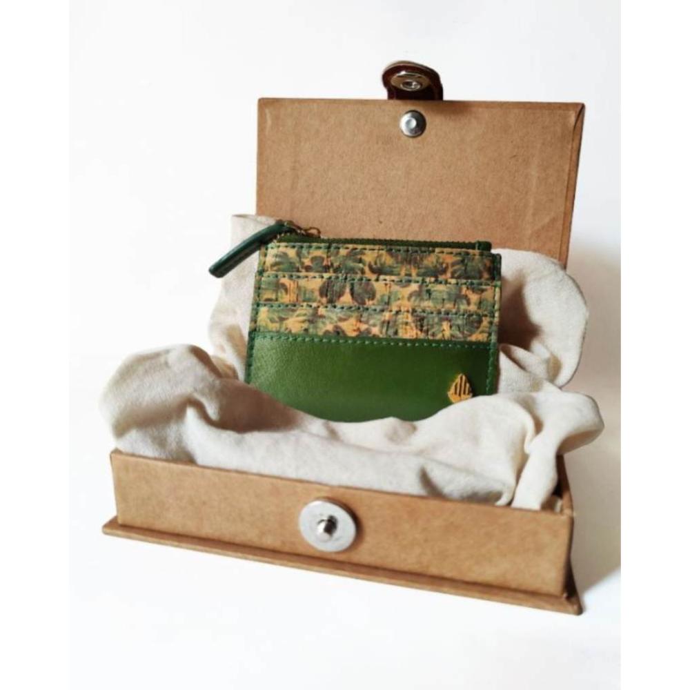 This camouflage, compact green vegan leather cardholder embodies camouflage, compact and vegan leather craftsmanship. Ideal for individuals with a flair for style, it offers a statement of style and function. Packed & quality-checked by Indianshelf.