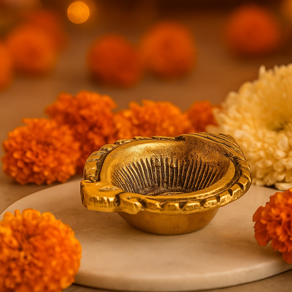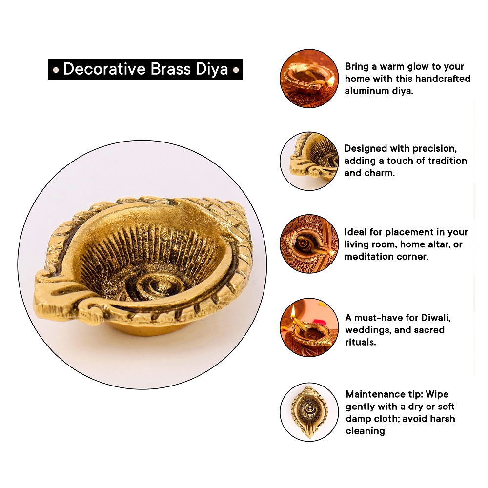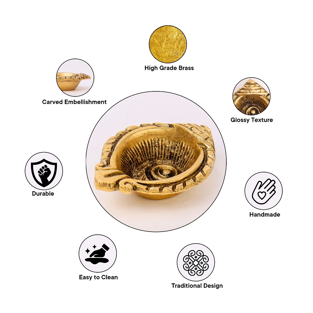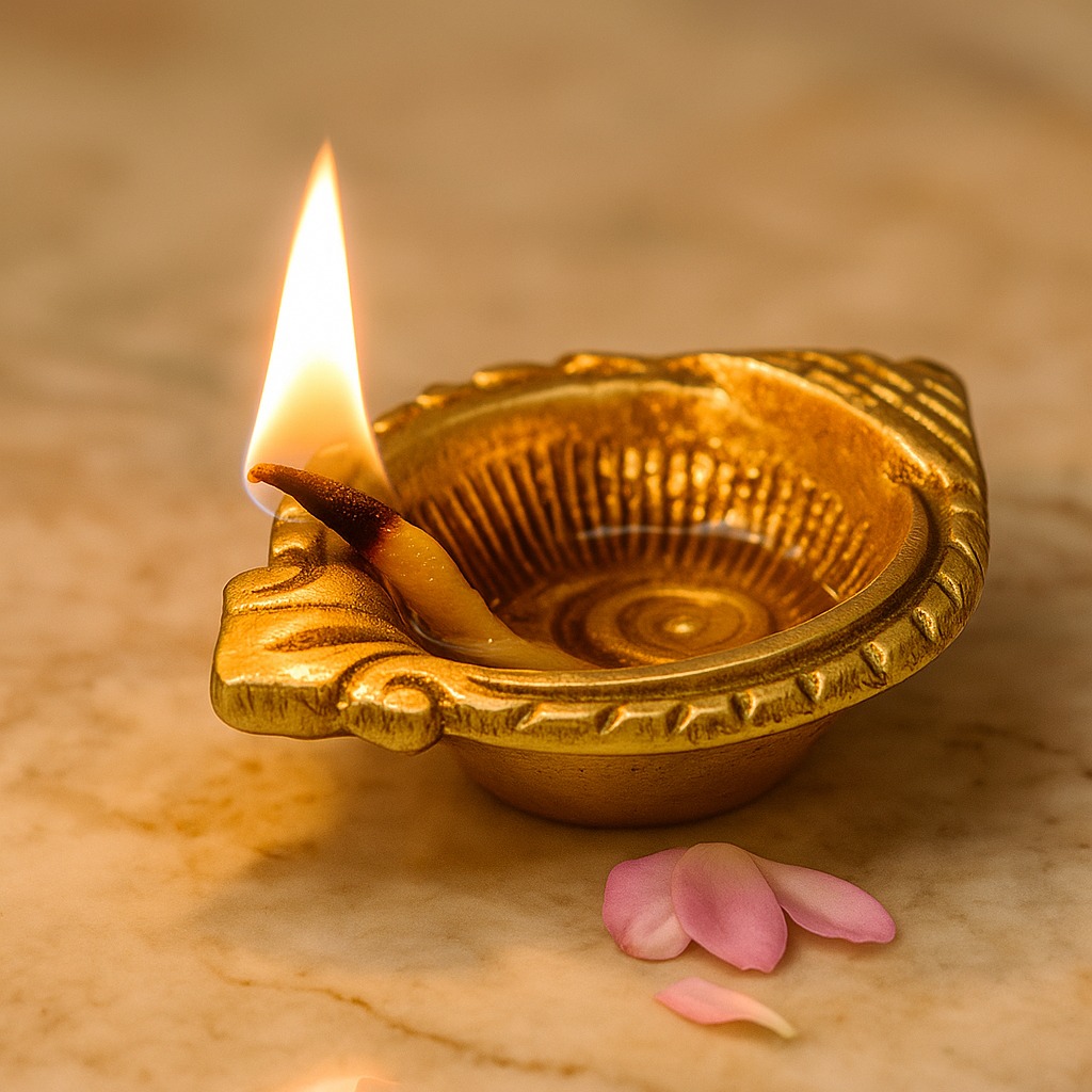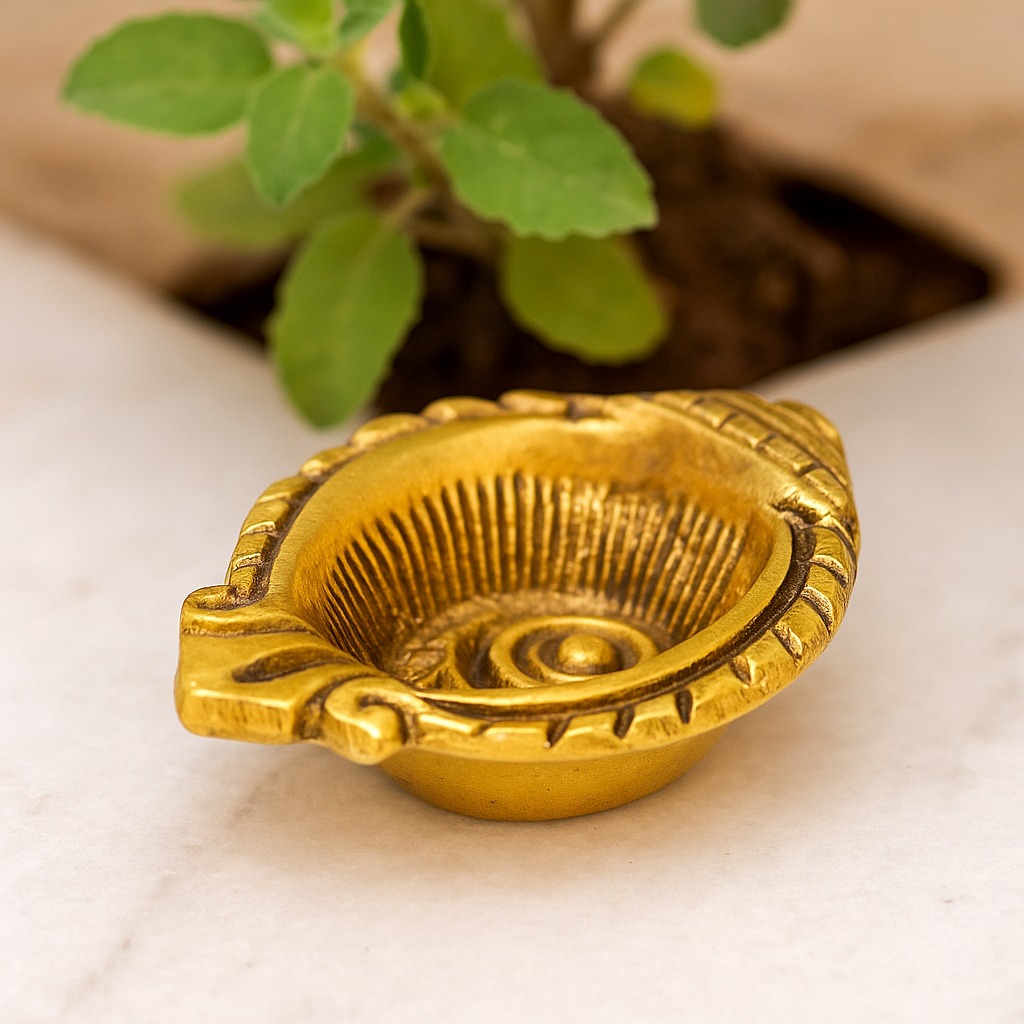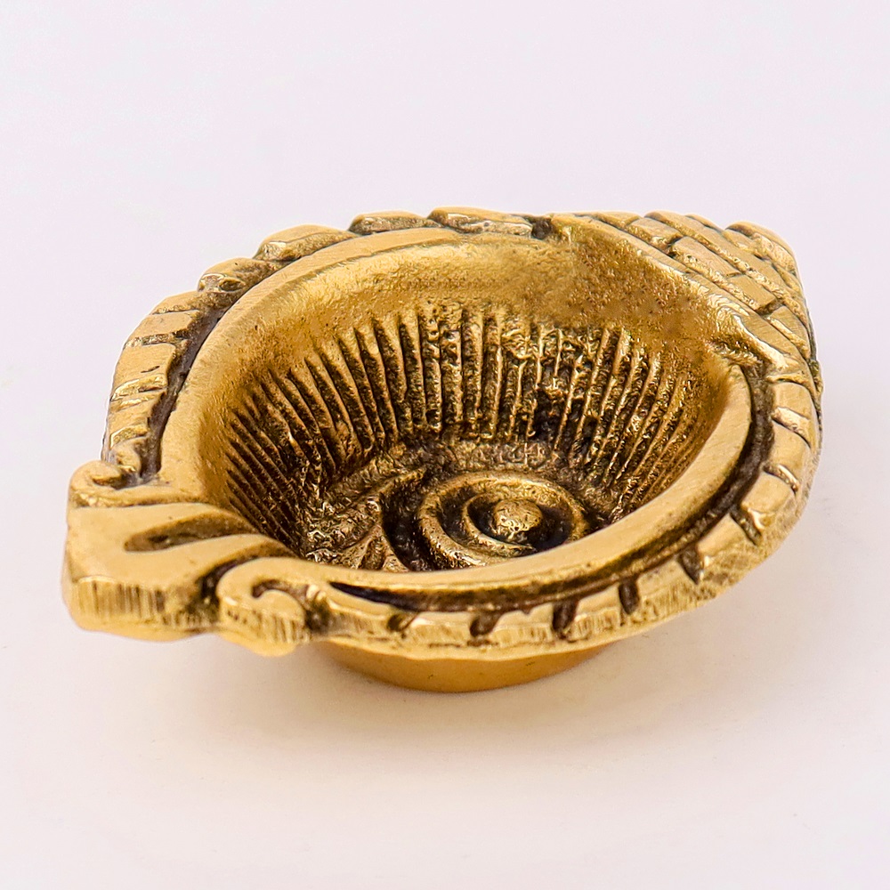 Illuminate your sacred space with the Conch Oil Lamp Diya, a handcrafted brass diya inspired by the divine shankh (conch shell). In Hindu tradition, the conch symbolizes purity, auspiciousness, and spiritual awakening, making this diya a perfect companion for Diwali puja and festive rituals. Its polished golden finish and compact design add elegance to any mandir or decorative setting.