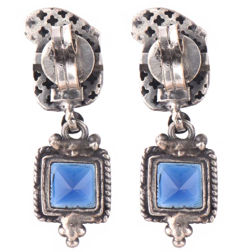 Contemporary 92.5 Sterling Silver Earrings Square Blue Topaz Stone In Rope Border