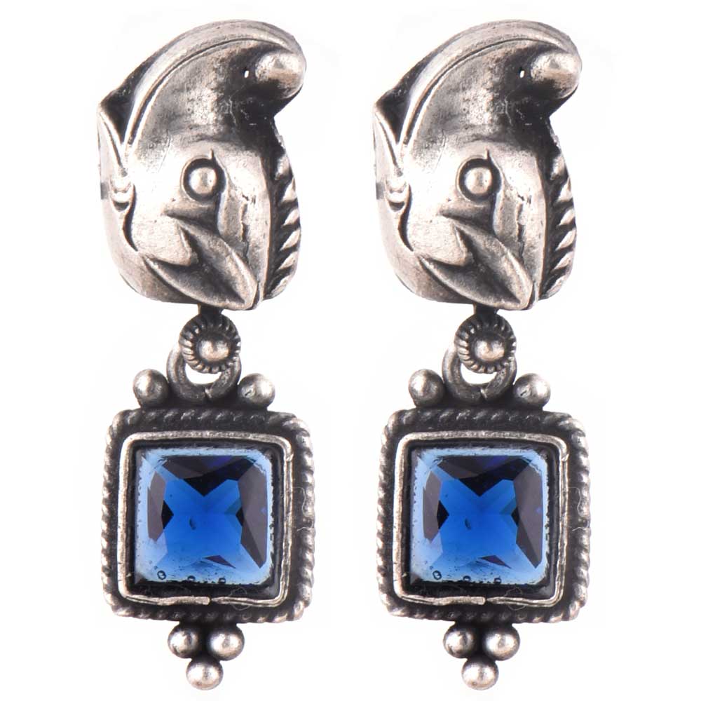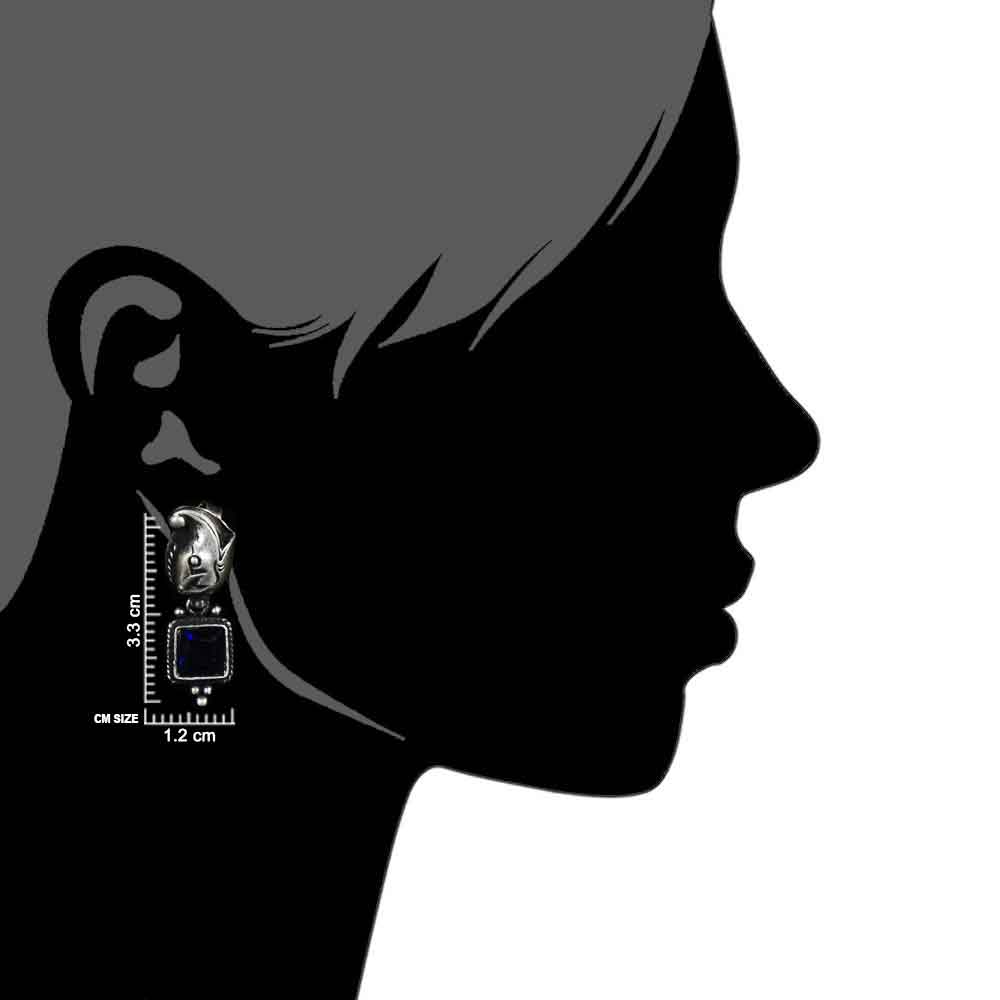 A very contemporary looking 92.5 Sterling silver earrings with a unusual pink shaped stud with blue topaz stone set in a squared roped borer and silver balls .Gift it to your near and dear ones.