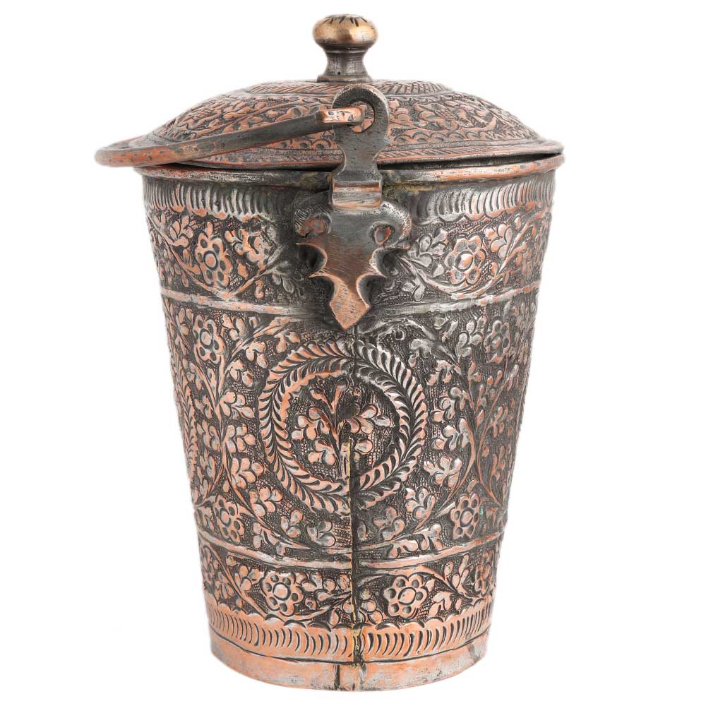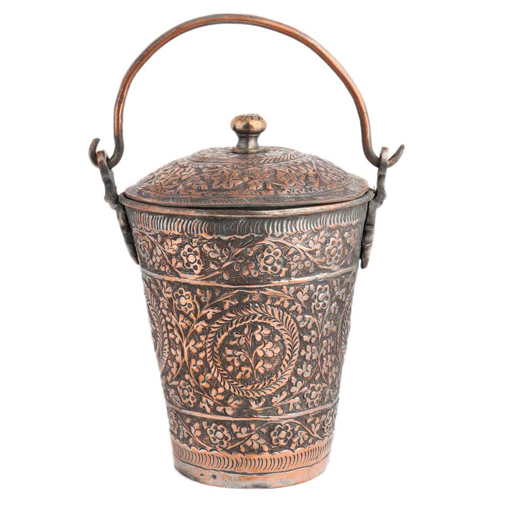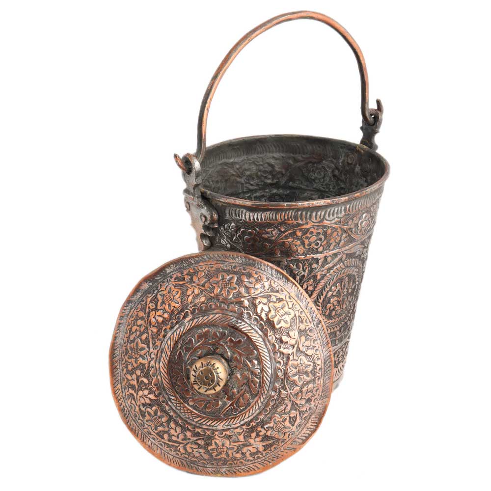 • Copper Bucket Decorated Repouse design With Lid