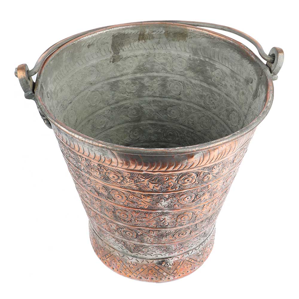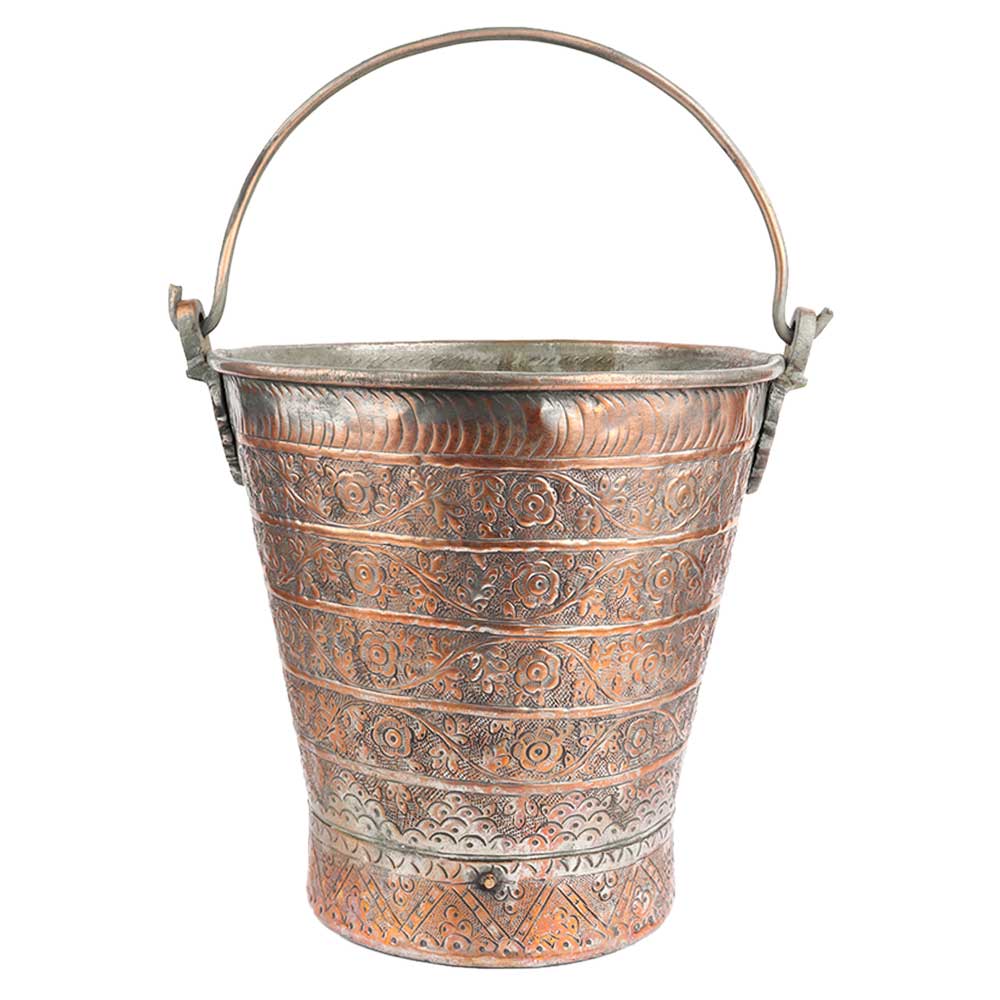 • Copper Bucket With Detailed Chasing And Repousse Work And Handle