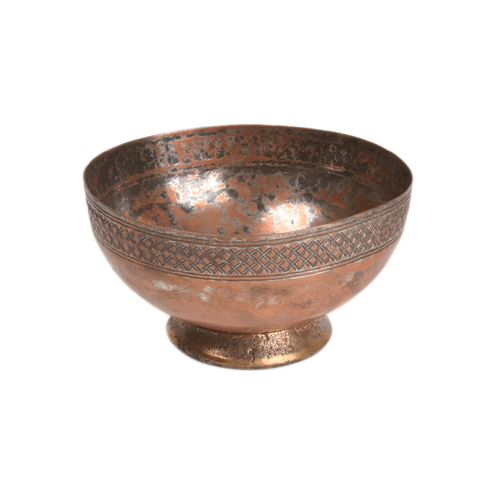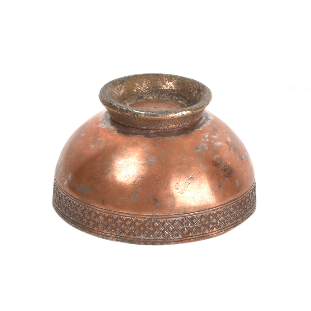 Copper Ceremony Bowl Hand Scribed Decoration Around the Top Rim.