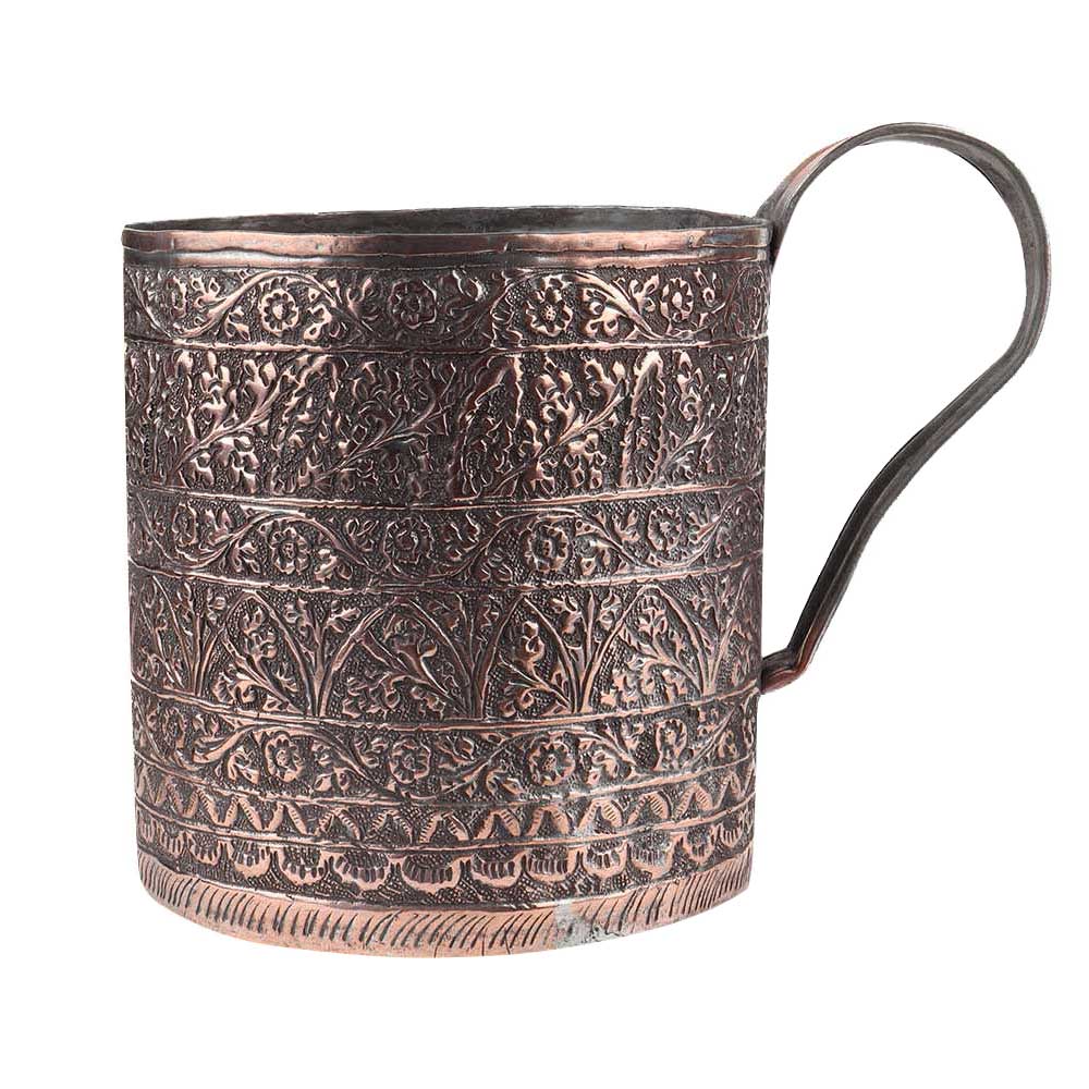 • Copper Cup With Chiseled Floral Decoration And a wide Handle