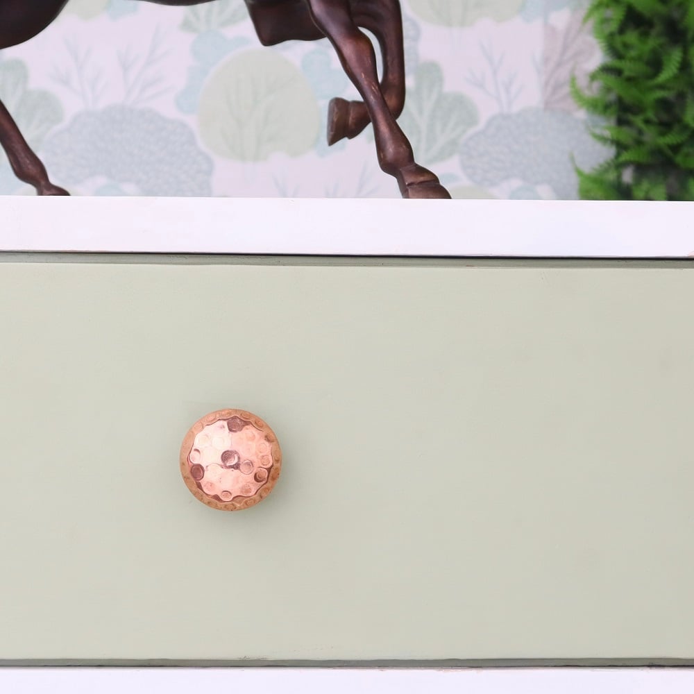 Made from high-quality materials, the Copper Dot Flat Drawer Knobs are designed for durability. Their flat, round shape paired with the copper dot creates a sophisticated and modern aesthetic. The smooth, matte finish ensures a sleek and polished appearance, while the copper accent adds a subtle shine.