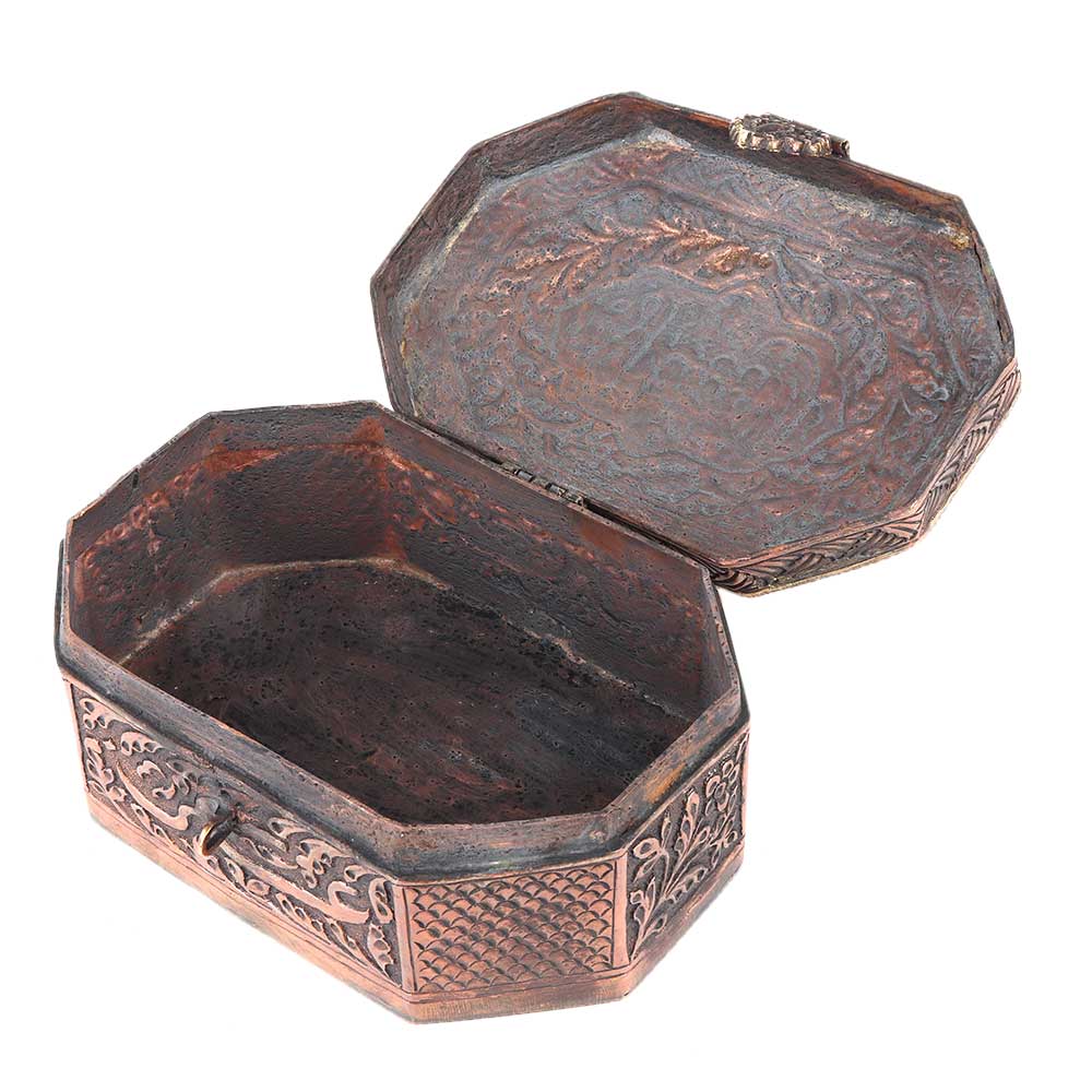 • Copper Eight Sided Storage Box With Arabic Inscription