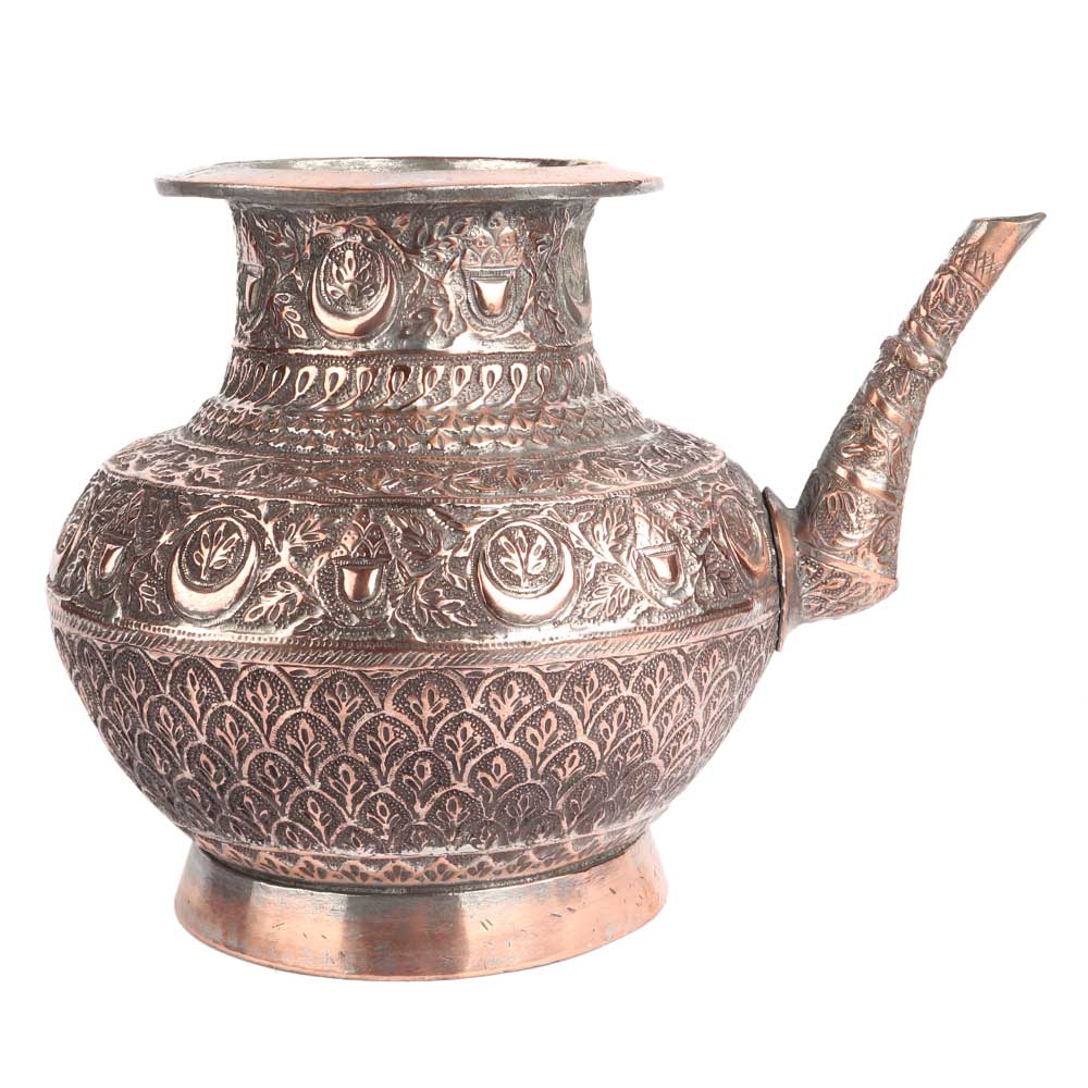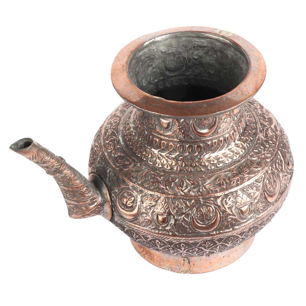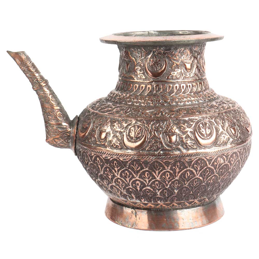 • Copper Holy Water Pot With Floral Motifs And Stout
