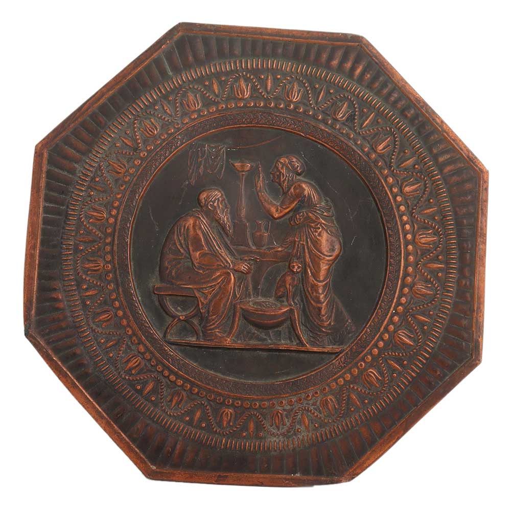 • Copper Iranian Mythological Engraved Octagonal  Plate Wall Hanging