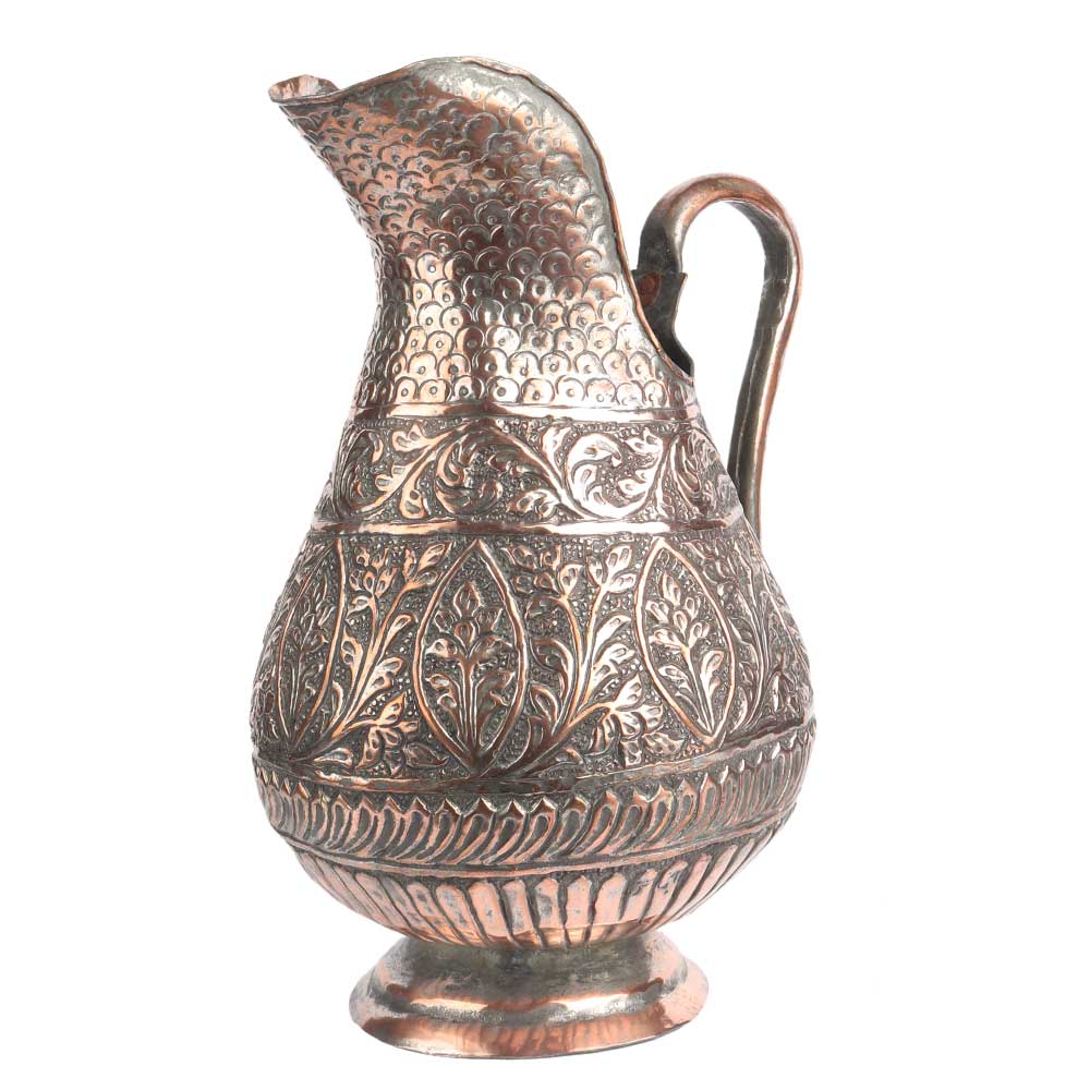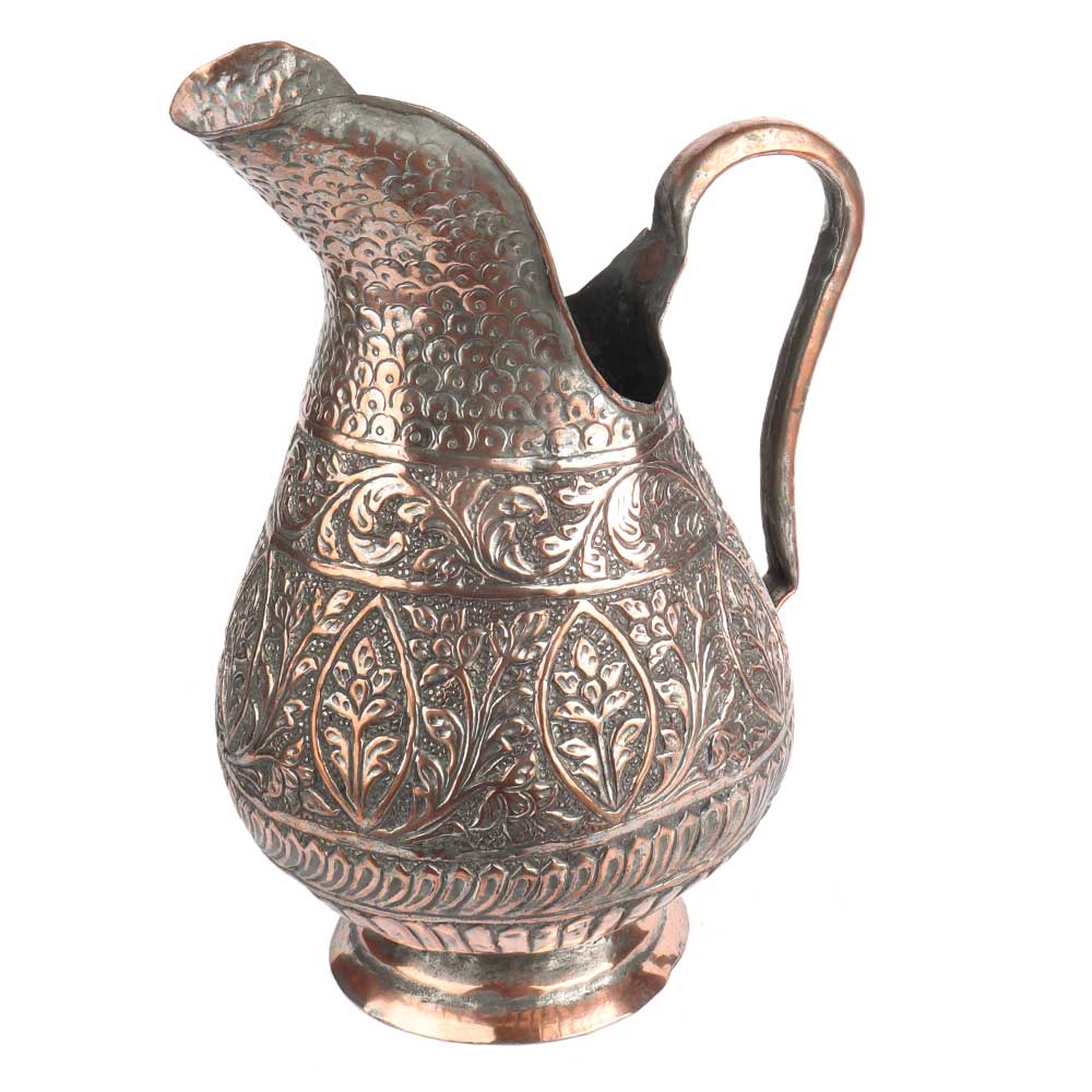 Copper Jug With Islamic Carved Floral Design with lots of flowers and leaves all over the surface of the jug .Wedding gift, anniversary gift, house warming gift, flower pot, planter pot. Gift for your near and dear ones.