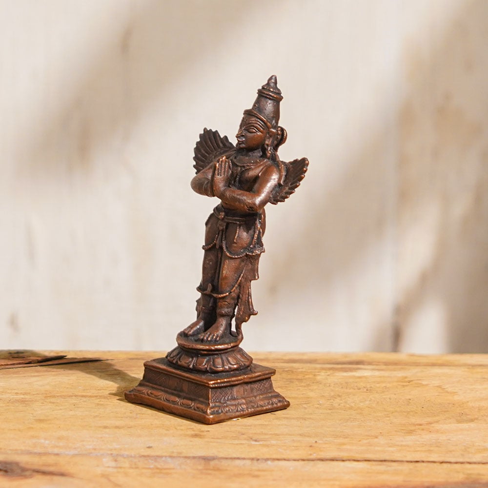 If you are looking to buy a beautiful and authentic Lord Garuda statue, look no further than this stunning copper Lord Garuda Murti. Handmade by skilled Indian artisans from high quality copper, this statue is not only beautiful, but also believed to be an auspicious metal. Standing tall and majestic, this Lord Garuda statue will make a perfect addition to your home or office prayer room or at the temple. It is a perfect way to bring positivity, luck, and prosperity into your life. You can use it for decoration, collection or as a gift to family, friends or relatives on special, festive or auspicious occasions. The intricate details and craftsmanship of this copper God statue are truly breath-taking. With its beautiful design and superior quality, this Copper Lord Garuda statue is sure to become a cherished item in your collection. So why wait? Buy Lord Garuda Murti online now and experience the beauty and power of this divine statue for yourself!